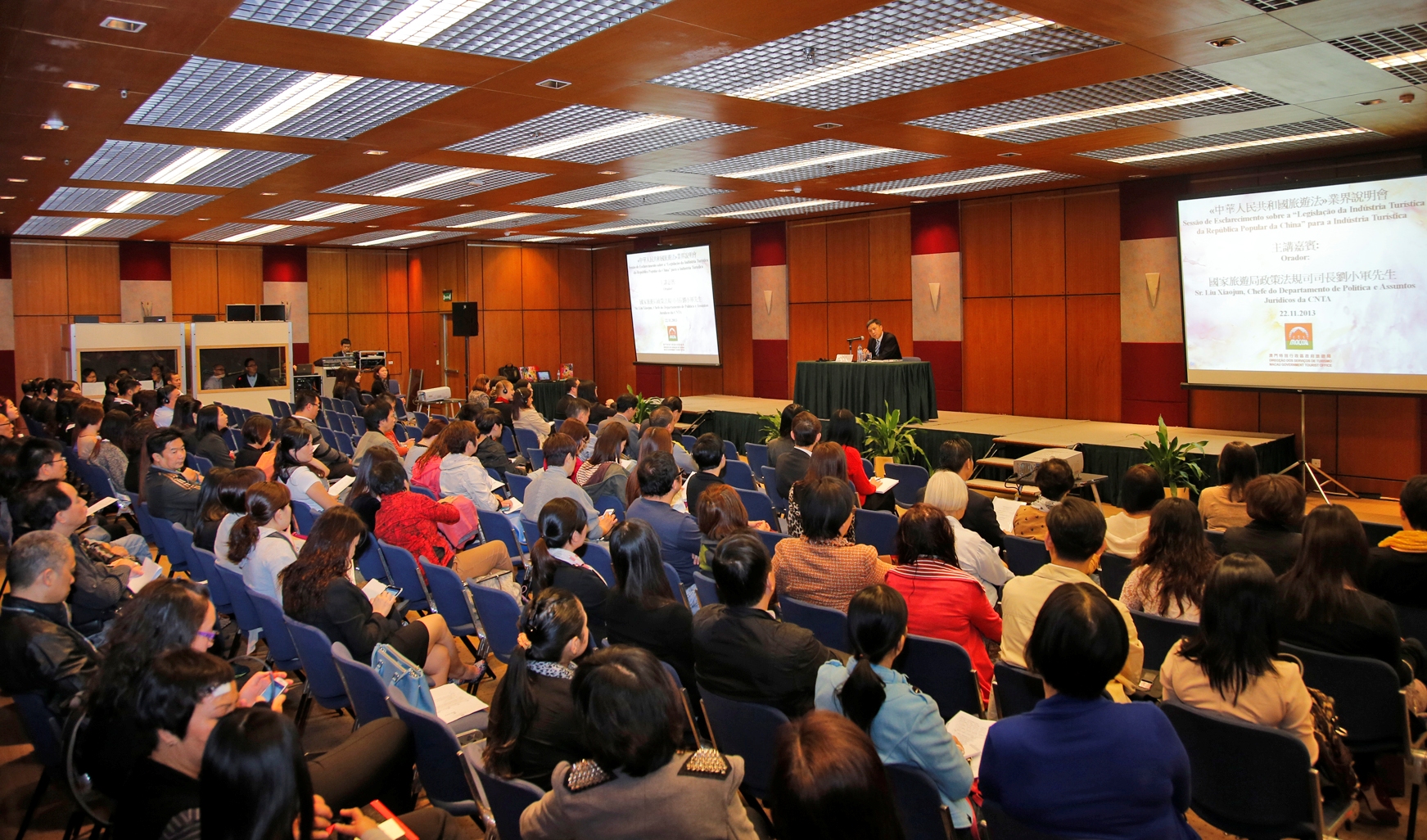 As the “Tourism Law of the People’s Republic of China” has come into force in Mainland China since 1 October 2013, MGTO invited Director General of the Policy and Legal Department of CNTA, Liu Xiao Jun to come to Macau today (22 November) and address local tour guides and travel agencies about the “Tourism Law of the People’s Republic of China” in two trade seminars. MGTO Director Maria Helena de Senna Fernandes attended the seminars as well. During the explanatory sessions, Liu Xiao Jun elaborated on some widely-concerned clauses in the Tourism Law. He also took time to respond to various issues encountered or concerned by Macau trade after the Tourism Law took effect.