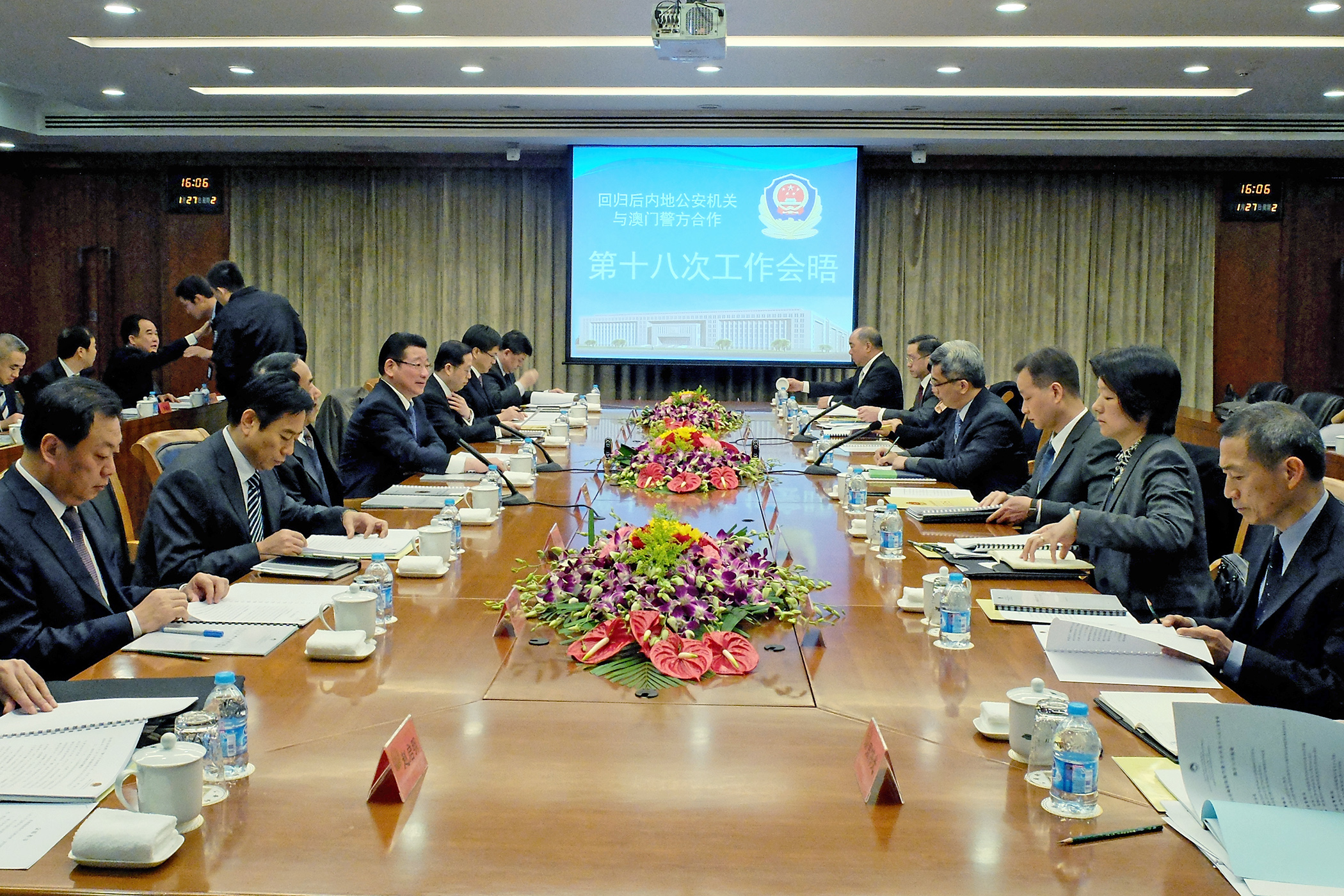 Meeting with the Vice Minister of the Public Security, Mr Chen Zhiming, in the 18th co-operation meeting, Mr Wong thanked the Ministry for its support in the large-scale events held in Macao in the past year.