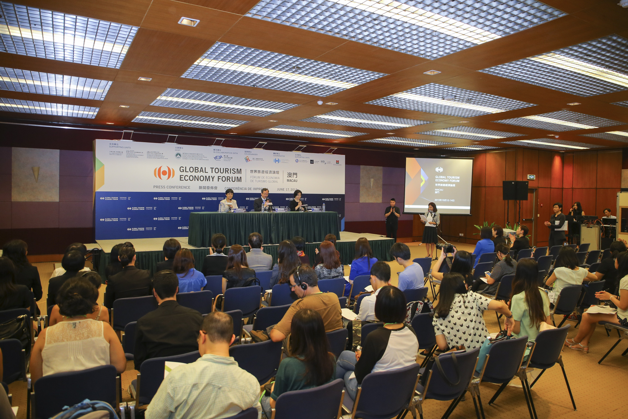 The Global Tourism Economy Forum (“GTEF” or “the Forum”), scheduled to take place at the Venetian Macao from 12 to 14 October, 2015, will unveil an innovative world class dialogue on cultural tourism with the theme of “One Belt One Road – Unleashing New Dynamics of Cultural Tourism”. A pre-event press conference was held at the Tourism Activities Centre in Macao today (17 June). Remarks were made by the Chief of Office of the Secretary for Social Affairs and Culture of the Macao SAR Government Lai Ieng Kit and Macau Government Tourist Office (MGTO) Director Maria Helena de Senna Fernandes while the Vice Chairman and Secretary-General of Global Tourism Economy Forum Pansy Ho introduced details about this year’s program.
