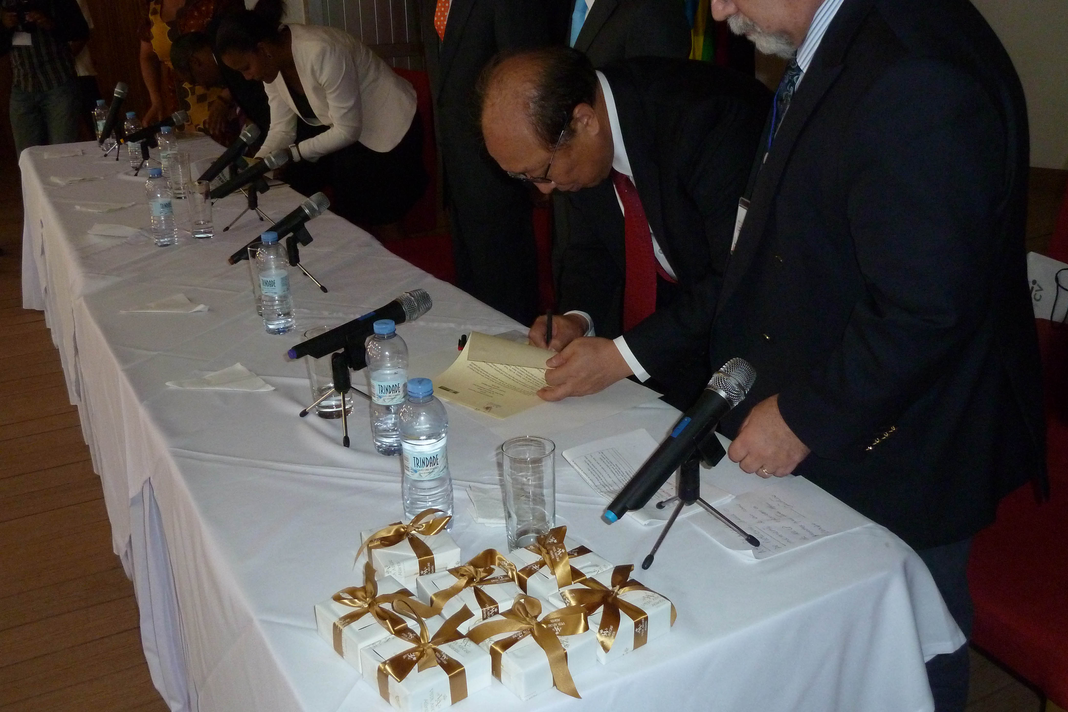 The opening ceremony of the 25th annual meeting of the Association of Portuguese Speaking Universities (Associação das Universidades de Lrngua Portuguesa, AULP) was held in Praia county, Cape Verde. Cape Verde Prime Minister José Maria Neves, Cape Verde Minister of Higher Education, Science and Innovation António Correia e Silva, and Secretary for Social Affairs and Culture of the Macao SAR Tam Chon Weng attended the meeting. University of Macau (UM) Rector Wei Zhao delivered an address at the opening ceremony in Portuguese, winning a big applause from the participants.