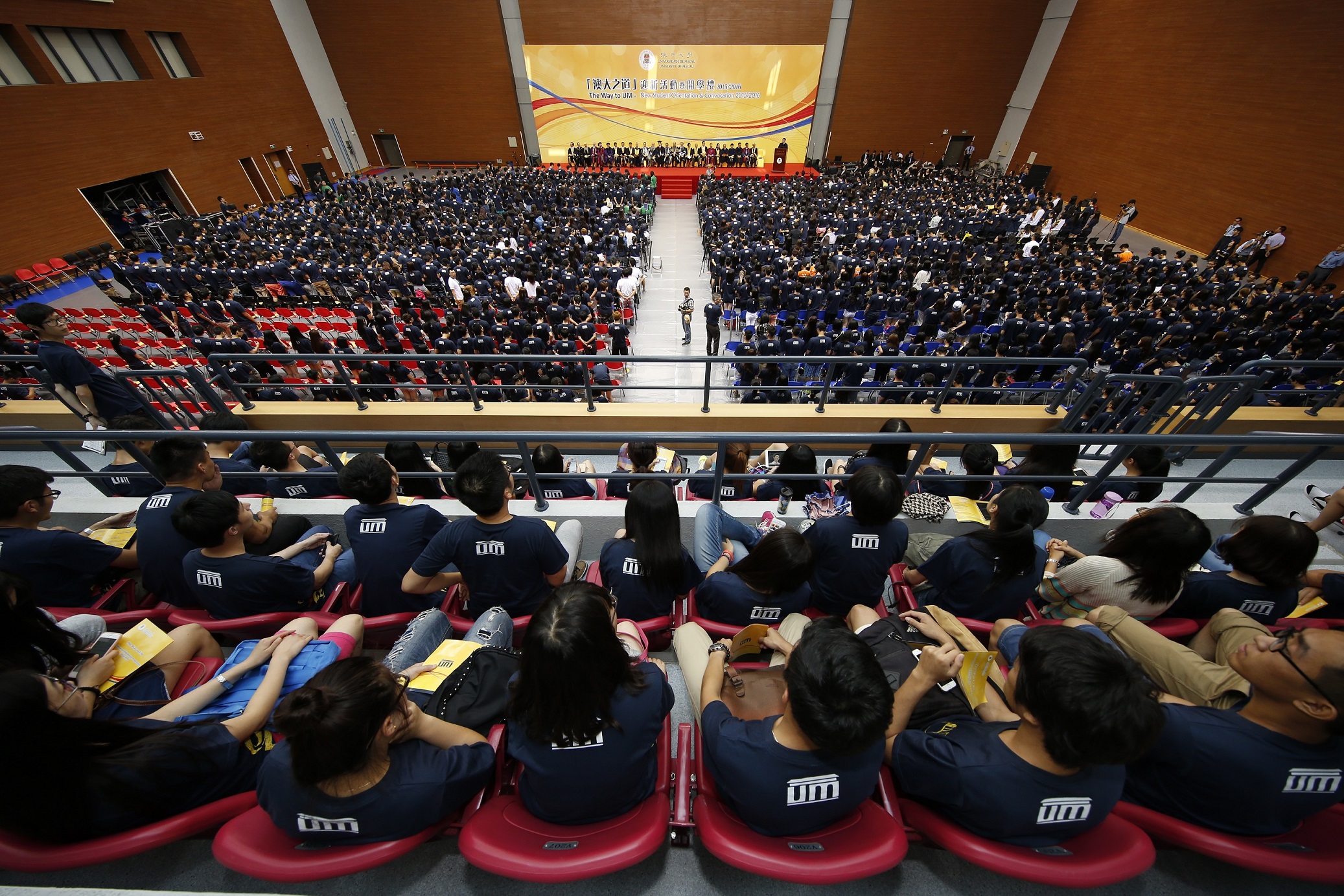 The University of Macau (UM) today (20 August) held the convocation for the 2015/2016 academic year for nearly 2,000 new undergraduates and postgraduates in the UM Sports Complex. Rector Wei Zhao expressed his expectations for the students, stressing the importance of honesty and living a moral life.