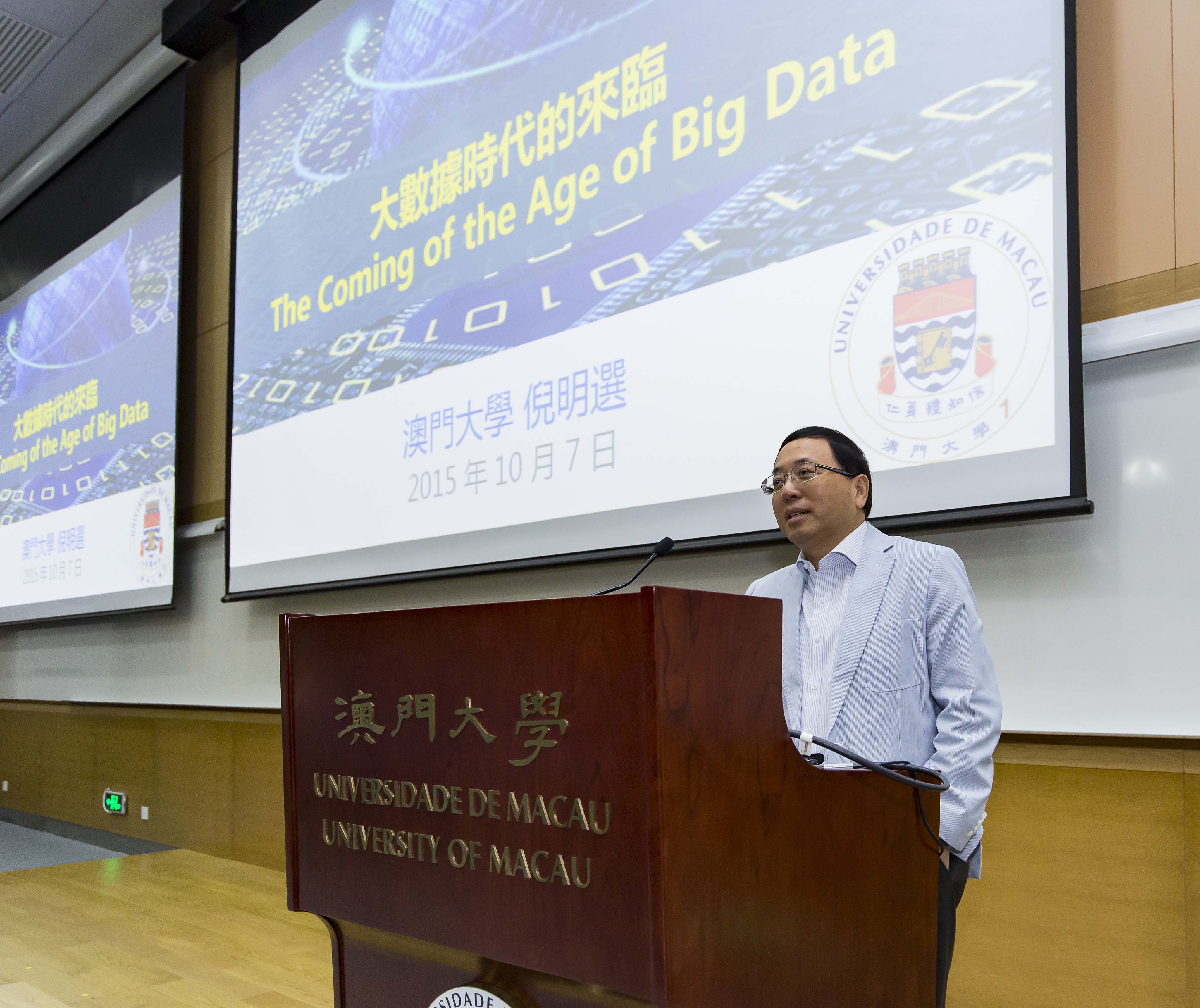 The University of Macau (UM) held the first lecture of its University Lecture Series today (7 October). The lecture, titled ‘The Coming of the Age of Big Data’, was given by Prof Lionel Ni, a renowned computer scientist and vice rector for academic affairs at UM.