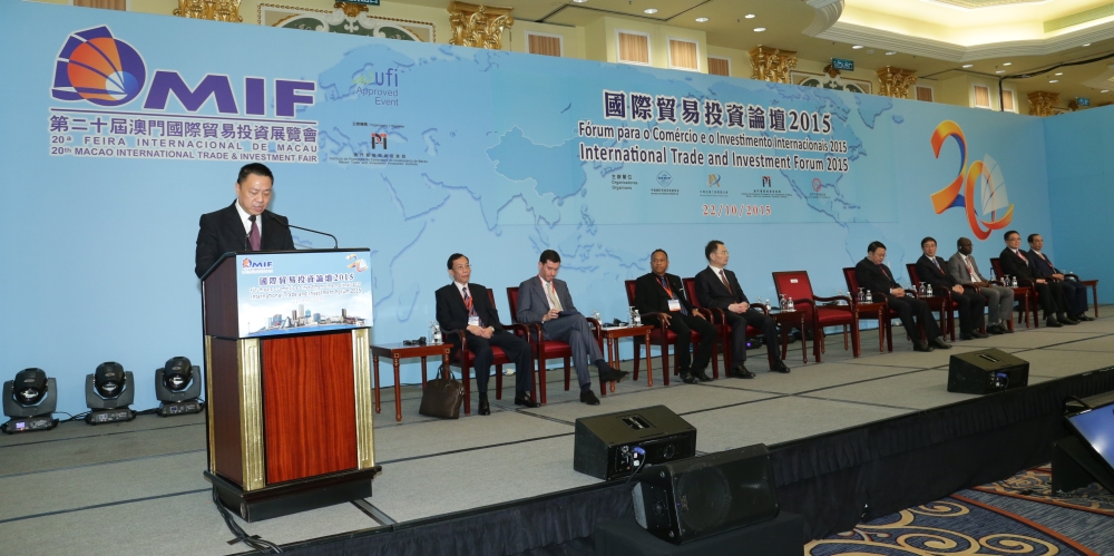 One of the key activities under the 20th Macao International Trade and Investment Fair (MIF) – the International Trade and Investment Forum 2015 - was held on 22 October. The event attracted the participation of over 400 persons, including government officials, business leaders, experts and scholars from home and abroad, to discuss about the opportunities for regional economic development under the “Belt and Road” initiative.