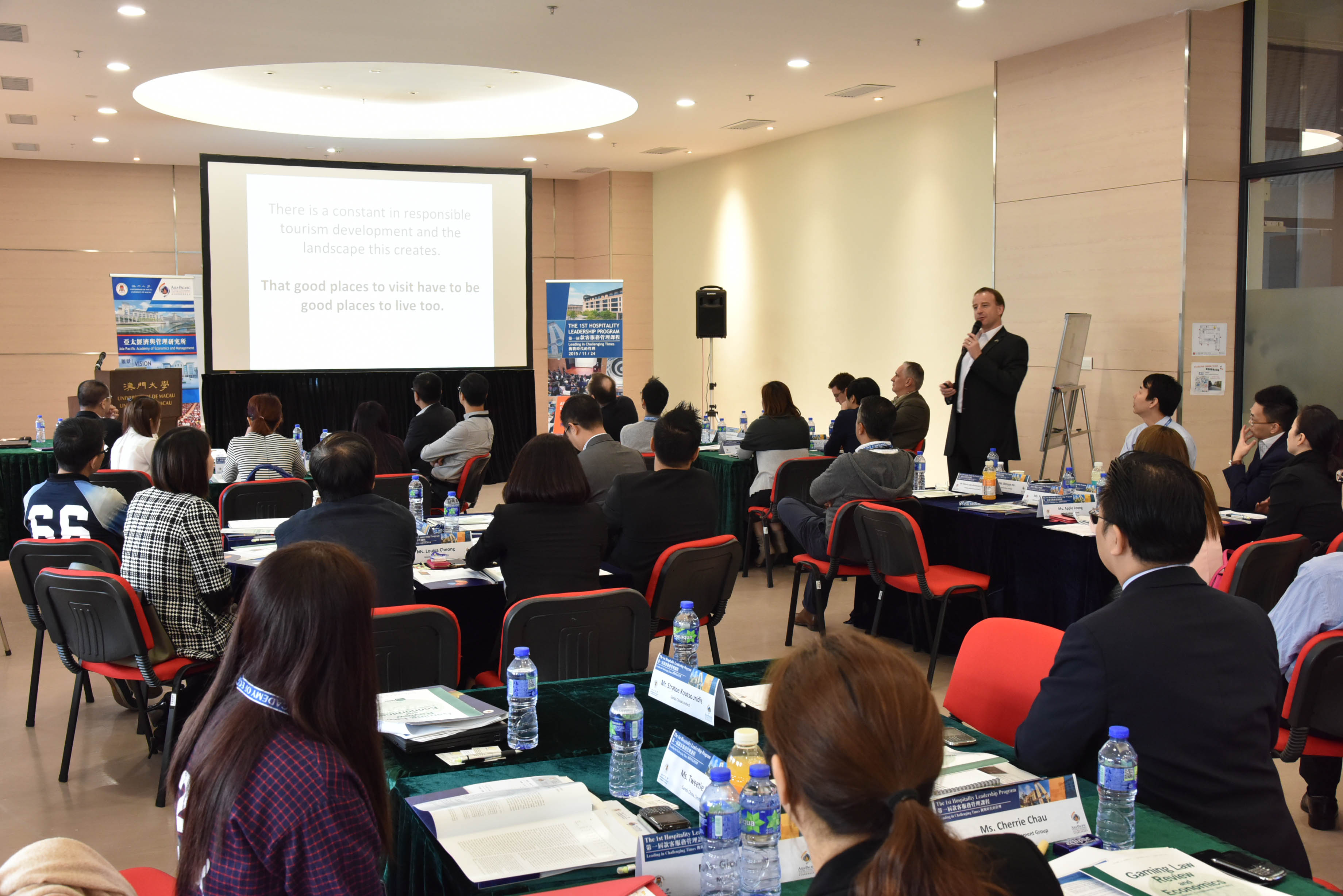 The First Hospitality Leadership Programme: Leading in Challenging Times, organised by the University of Macau (UM) Asia-Pacific Academy of Economics and Management (APAEM), opened today (24 November). The target audience of the programme are senior executives in the hospitality industry.