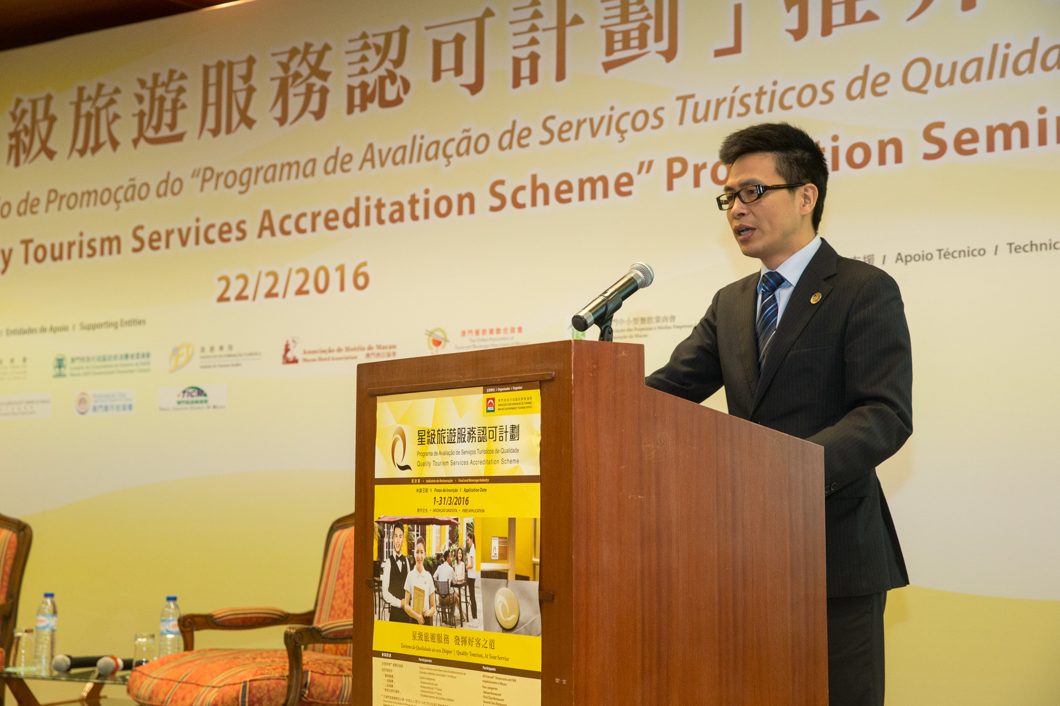 Macao Government Tourism Office (MGTO) held a promotion seminar of the “Quality Tourism Services Accreditation Scheme” (QTSAS) today (22 February) to call for applications from local catering sector this year. This is the third year for the Scheme to roll out in Macao. This time, not only the catering industry is targeted but also travel agencies are eligible for application, as part of MGTO’s efforts to encourage local travel trade and related sectors to keep upgrading their service quality. QTSAS 2016 is open for applications from local catering sector from 1 to 31 March. Details for participation of travel agencies will be announced soon.