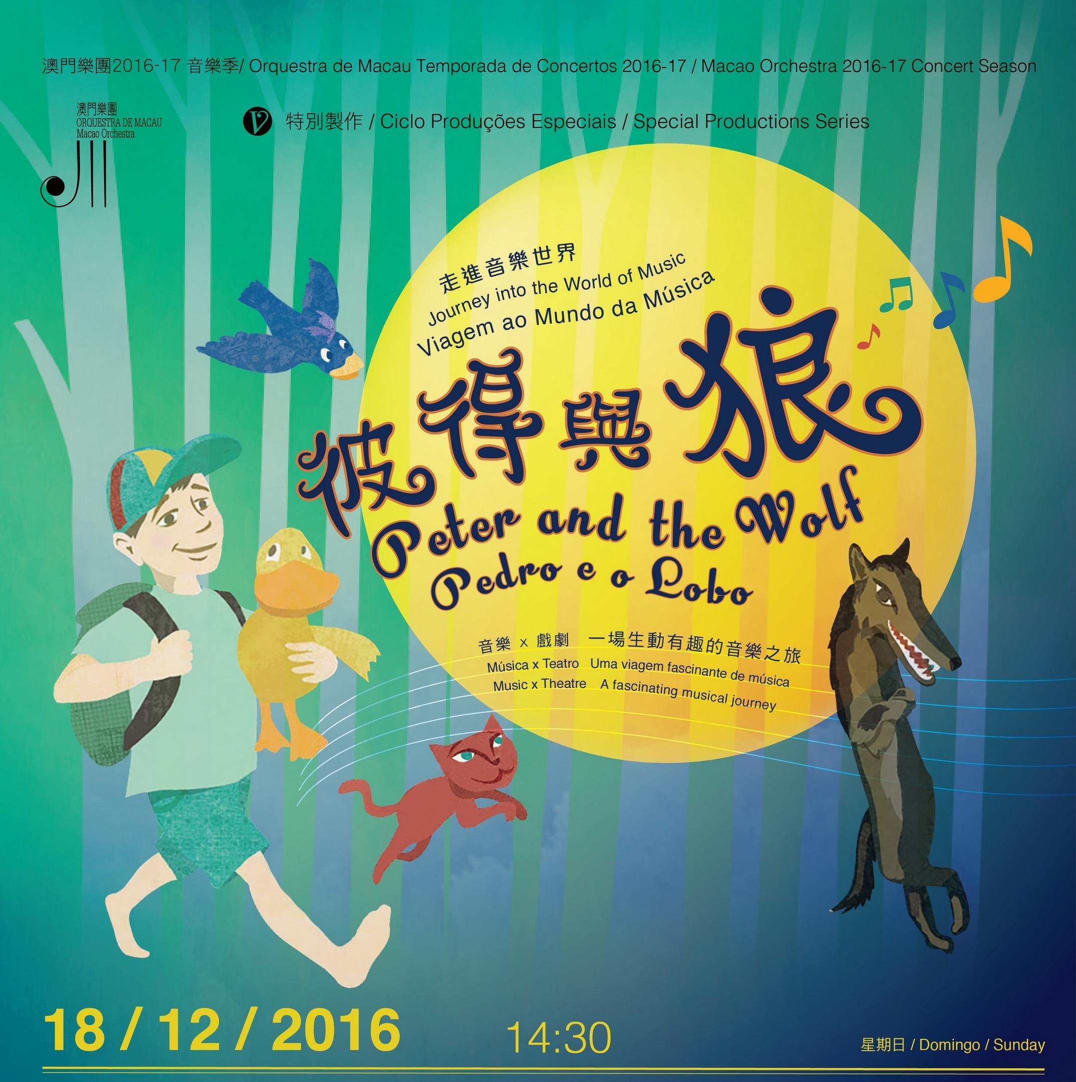 Tickets for the concert “Journey into the World of Music - Peter and the Wolf” are priced at MOP120, and the event will be conducted in Cantonese and English. Ticketing hotline: (853)2855 5555. For details of OM’s concert seasonprogramme, please visit Macao Orchestra’s webpage www.icm.gov.mo/om or follow its official WeChat account “Macao Orchestra”.