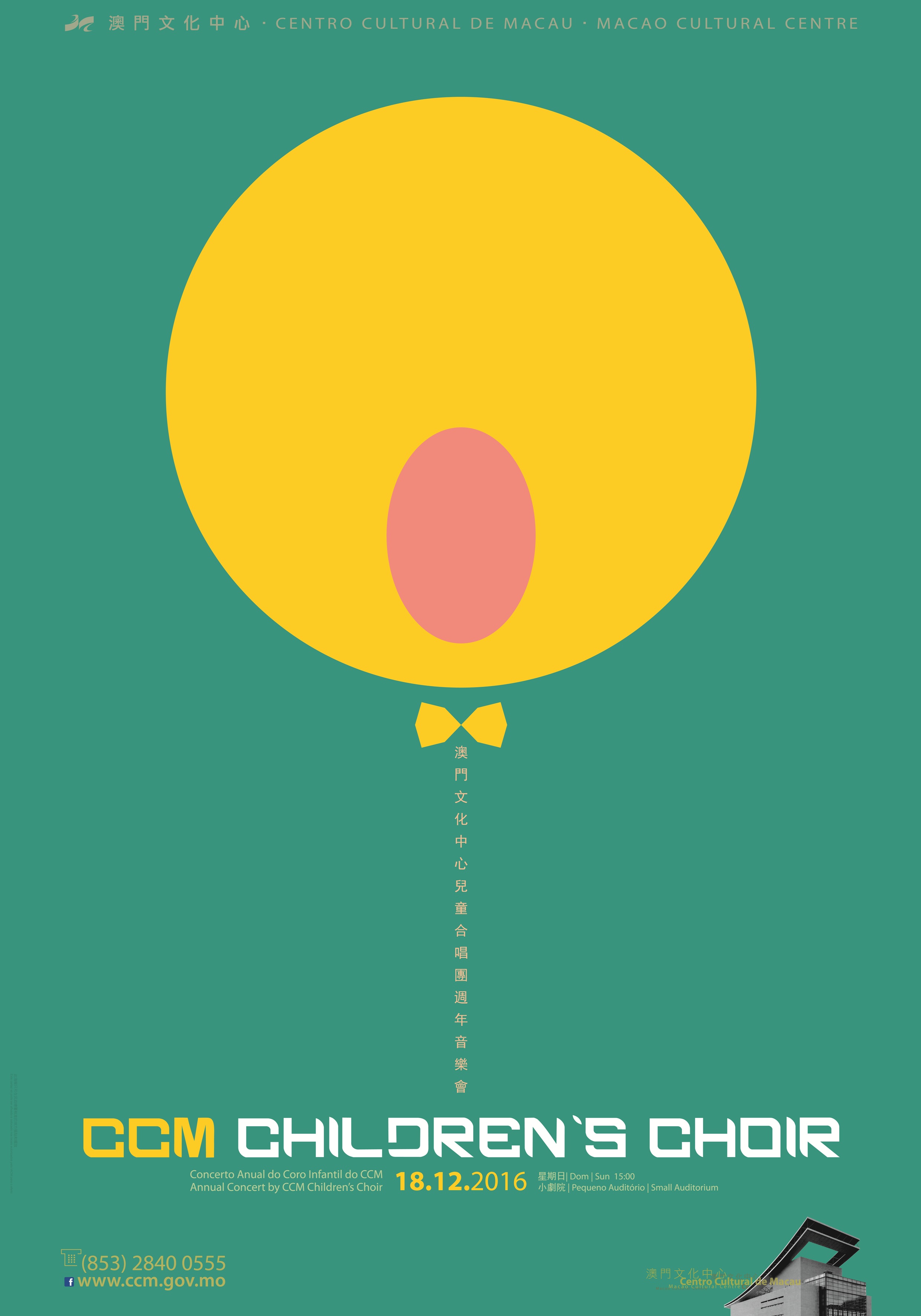 Ticket distribution for this free admission performance starts from November 15 at CCM’s box Office and Macao Ticketing Network outlets. Each person may collect two tickets, available on a first-come first-served basis. For further inquiries, please visit www.ccm.gov.mo or call (853) 2870 0699.