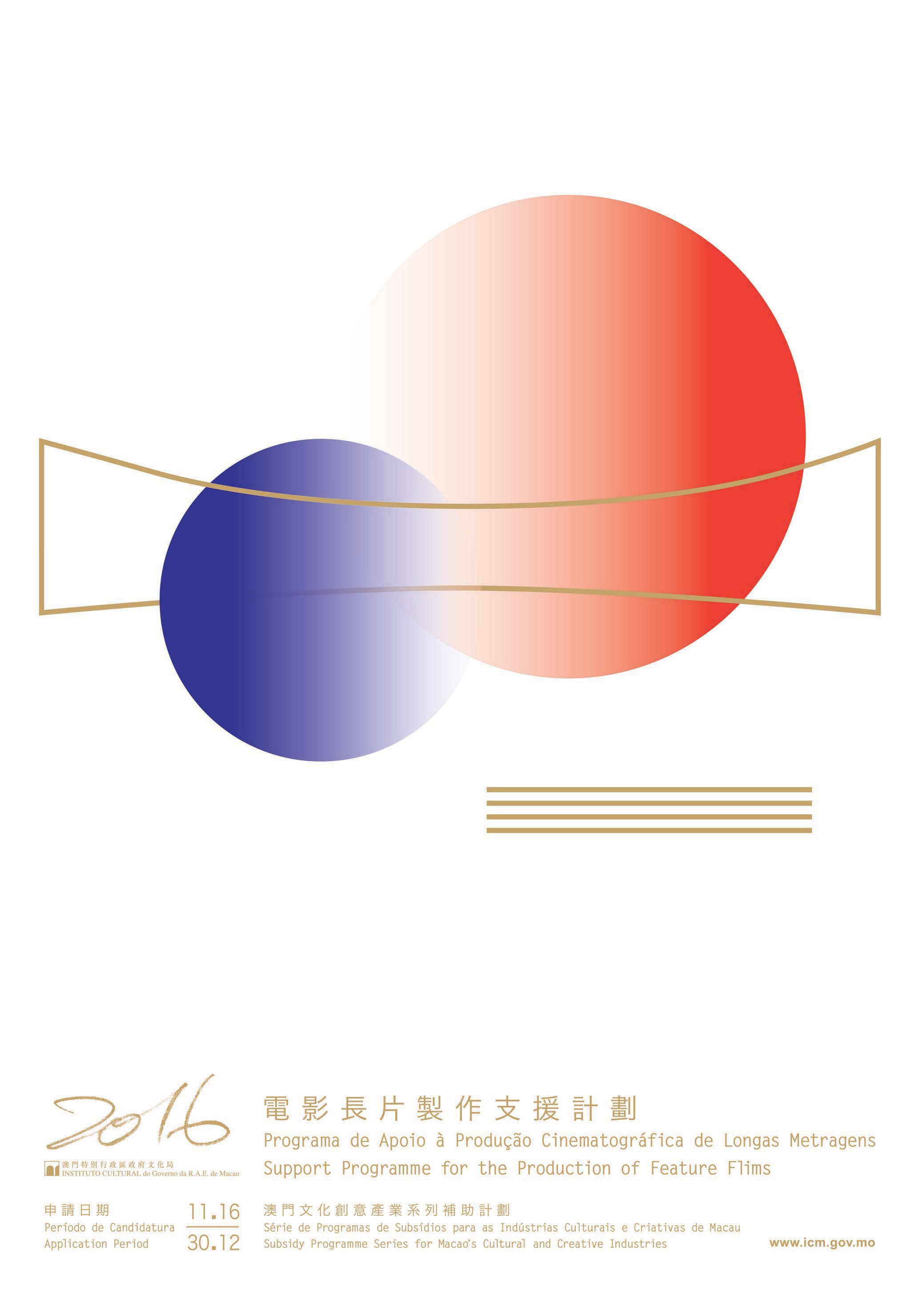 The applications for the “2016 Support Programme for the Production of Feature Films”, organized by the Cultural Affairs Bureau (IC), are now open until 30 December 2016. Local filmmakers and producers are welcome to apply. Successful applicants will each receive a financial support of up to 1.5 million patacas to produce a feature film.