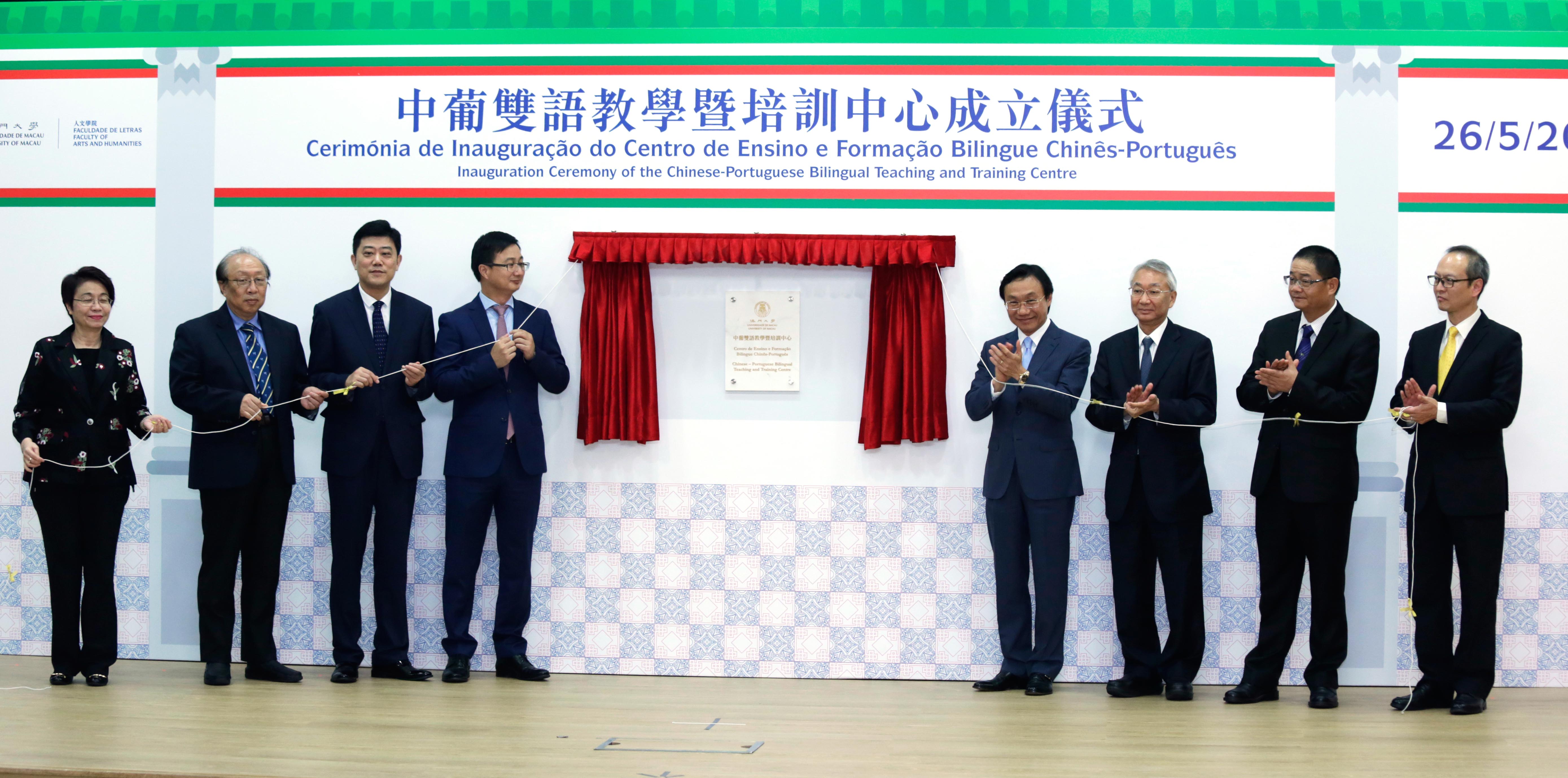 The University of Macau (UM) today (26 May) held an inauguration ceremony for the Chinese-Portuguese Bilingual Teaching and Training Centre. Secretary for Social Affairs and Culture Tam Chon Weng said that higher education institutions in Macao have better conditions than any university in mainland China to offer Portuguese language education. He expressed hope that faculty members of UM will work together at the Chinese-Portuguese Bilingual Teaching and Training Centre in order to nurture high-calibre bilingual professionals for Macao and China.