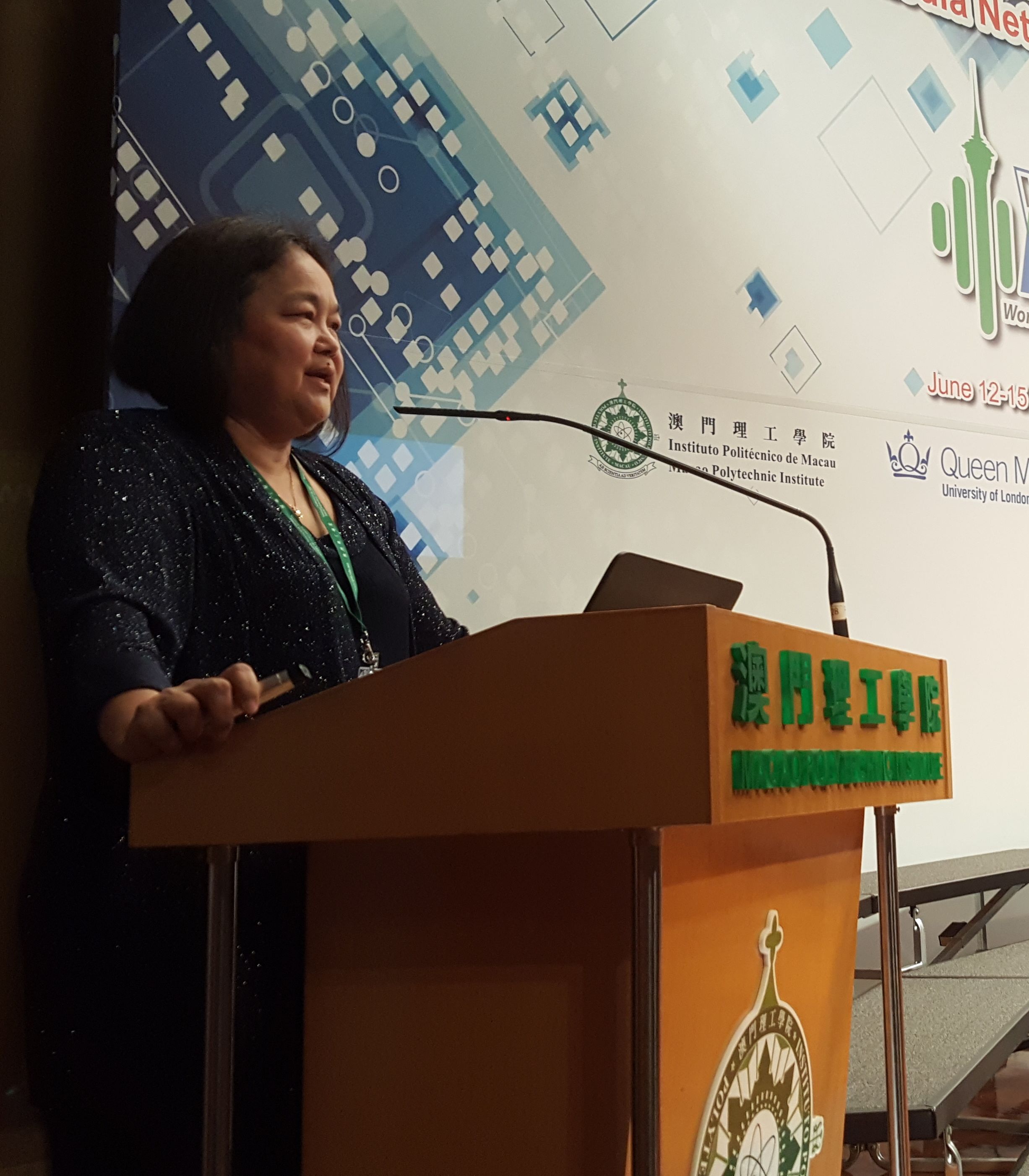 • Dr Rita Tse, representative of Professor Marcus Im (General Co-Chair of WoWMoM 2017 and Vice President of Macao Polytechnic Institute), expressed her gratitude to all the organisers for their great support of the symposium