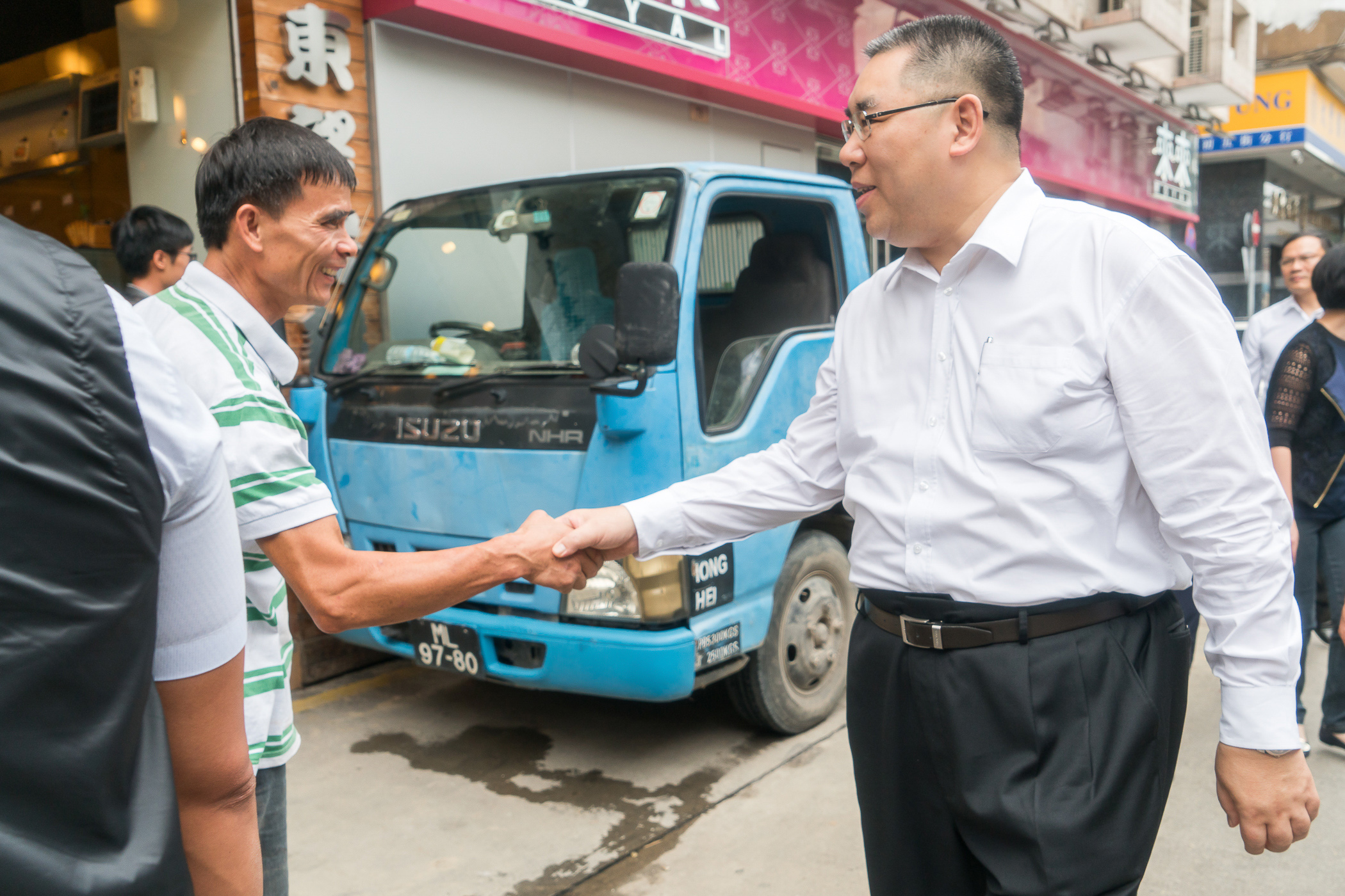During this morning’s visit, Mr Chui talked to shopkeepers at dried seafood stores, tea sellers, record shops, shoe shops and purveyors of Chinese medicine, in order to gain an understanding of trading conditions in the aftermath of Typhoon Hato and to hear retailers’ suggestions for dealing with flooding issues at the Inner Harbour area.