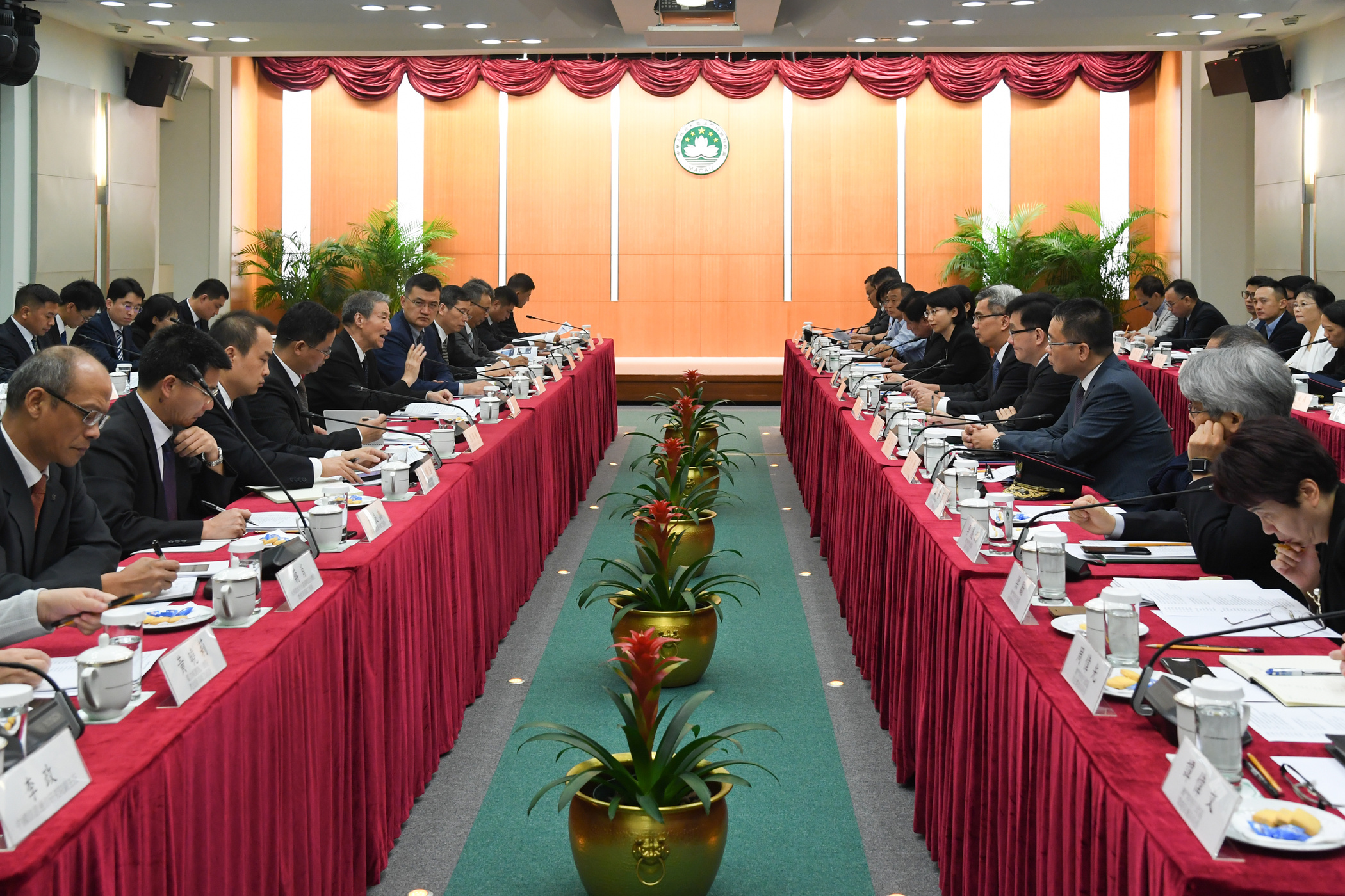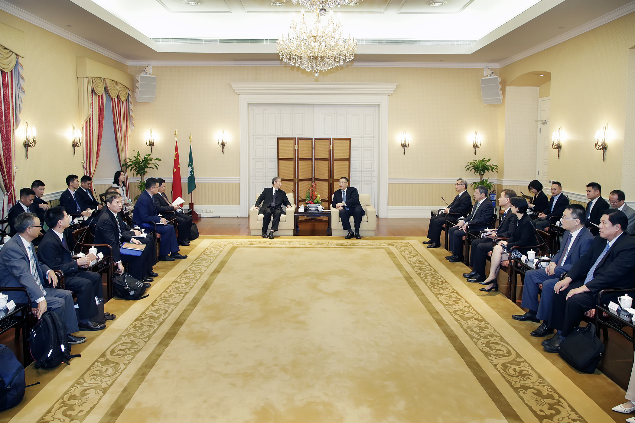Government officials attending today’s meeting included: the Secretary for Security, Mr Wong Sio Chak; the Secretary for Transport and Public Works, Mr Raimundo do Rosário; the Commissioner-General of the Unitary Police Service, Mr Ma Io Kun; the Chief-of-Office of the Chief Executive’s Office, Ms O Lam; the Director of the Government Information Bureau, Mr Chan Chi Ping; the Director of the Policy Research Office, Mr Lao Pun Lap; and Adviser to the Chief Executive’s Office, Ms Lei Ngan Leng.