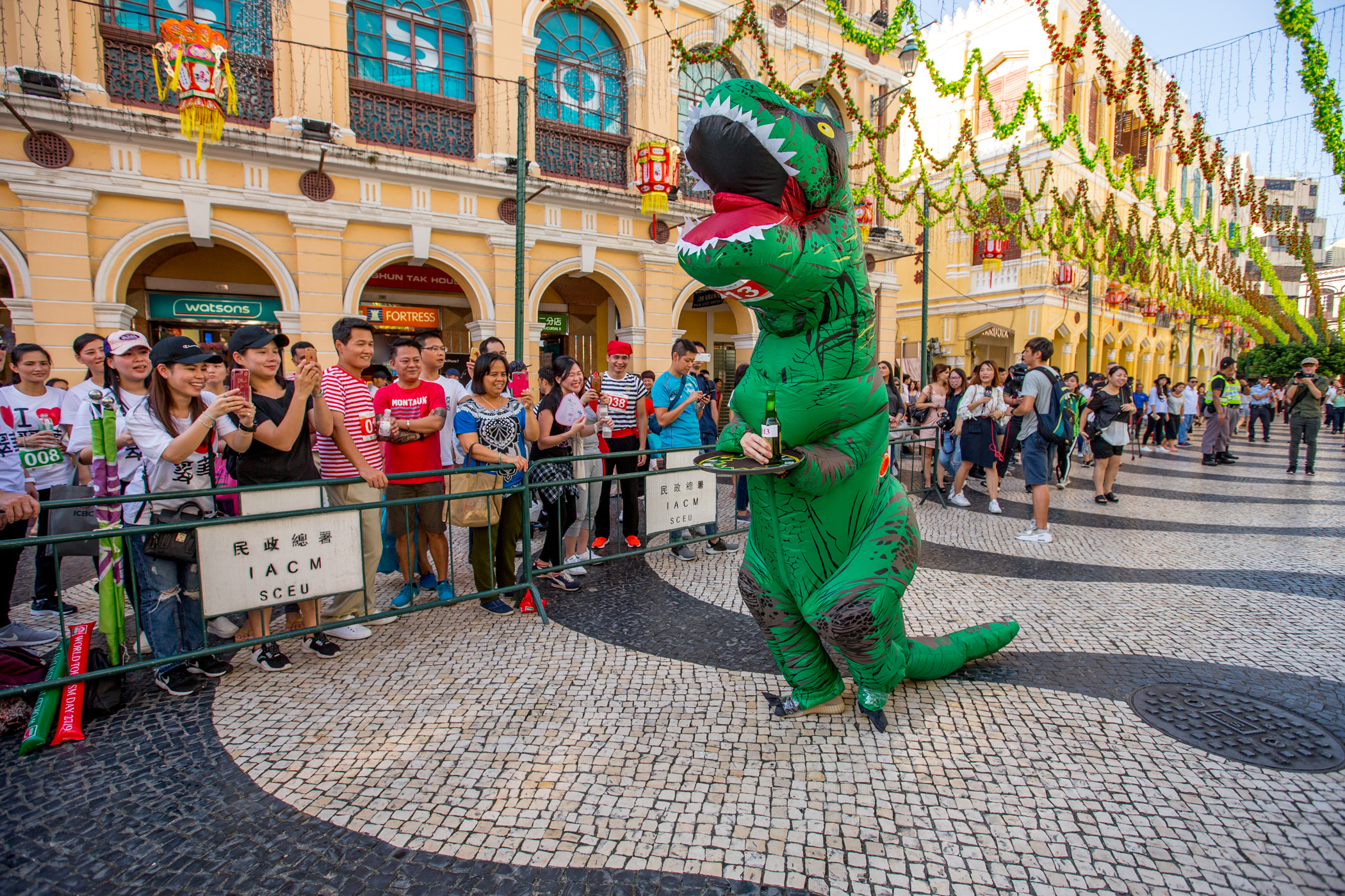 Following that, the traditional Tray Race kicked-off in the afternoon. Dressed in special costumes, contestants set off from the Ruins of St. Paul's to wind their way down the lanes amidst the Historic Centre of Macao, each carrying a tray with a bottle of beer, until hitting the finish line at Senado Square the fastest they could with the bottle of beer intact. The Race was filled with fun and excitement, enticing lots of visitors who took pictures and cheered the runners on, while demonstrating the attractiveness of Macao as a tourism city.