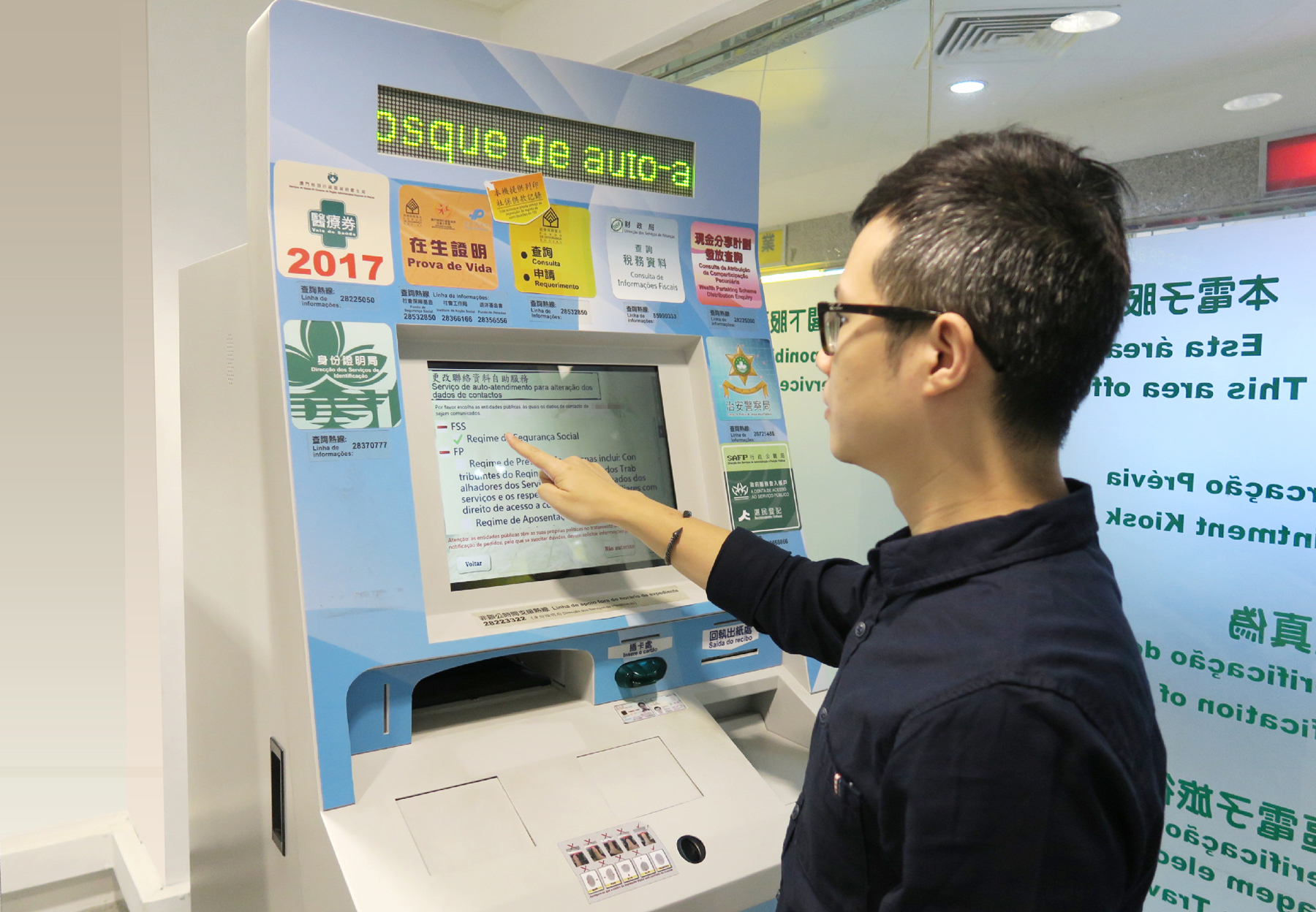 In the first phase, the Social Security Fund and the Pension Fund are the departments to cooperate with DSI. Later, the cooperation will extend to more government departments. At present, DSI has installed 69 integrated self-service kiosks in 42 locations in Macao to provide self-services involving 9 government departments. For details of the function and location of the self-service kiosk, please visit DSI’s website (www.dsi.gov.mo/kiosk_e.jsp).