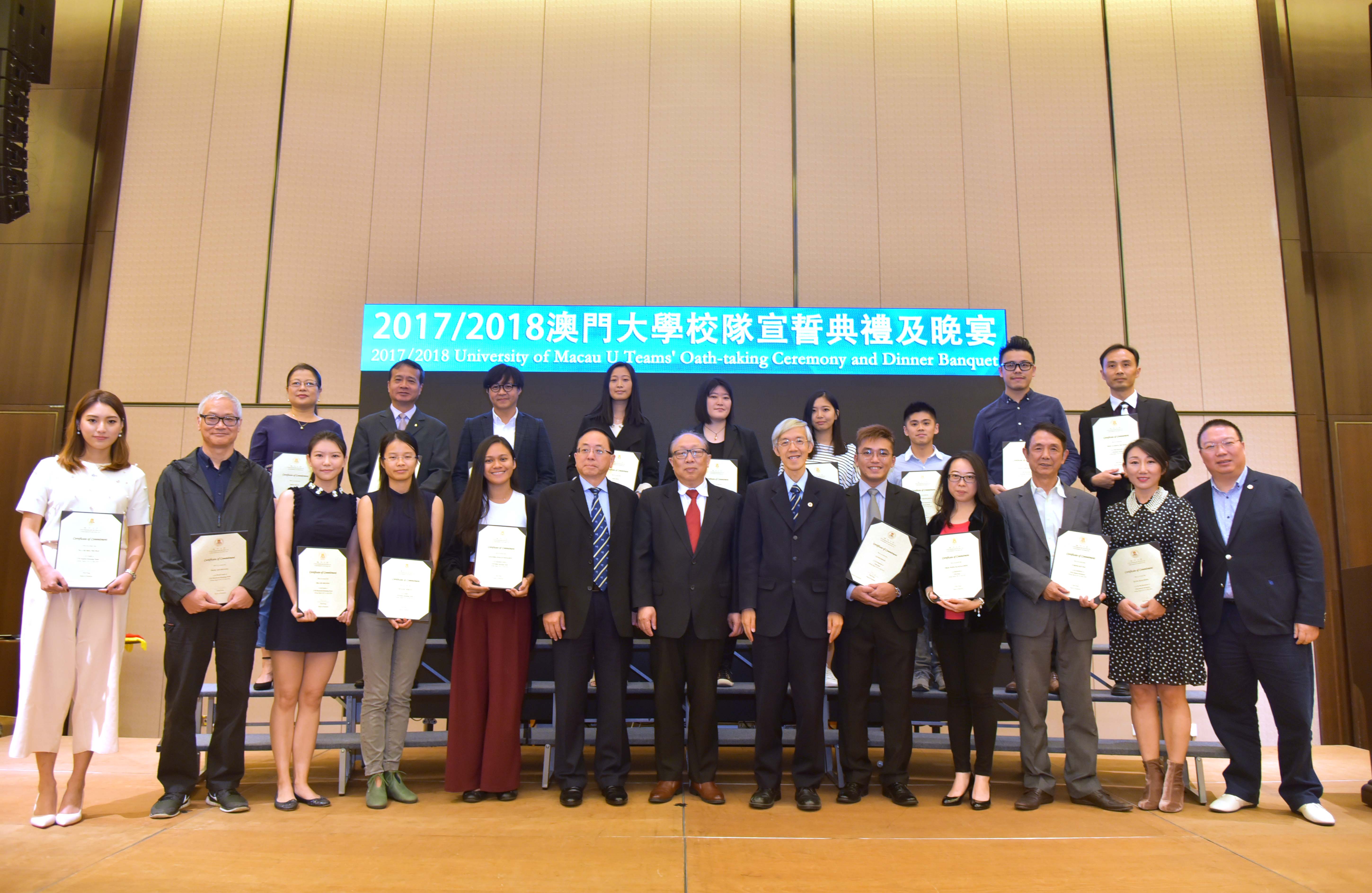 The University of Macau (UM) recently held the 2017/2018 U Teams’ Oath-Taking Ceremony. UM Rector Wei Zhao said at the ceremony that UM’s sports teams and cultural and art teams have attained significant achievements in recent years, which attest to the University Motto (Humanity, Integrity, Propriety, Wisdom, and Sincerity). Approximately 400 team members, coaches, and instructors from 28 sports teams as well as cultural and art teams attended the ceremony. The event was jointly held by the Students Affairs Office and the Office of Sports Affairs.