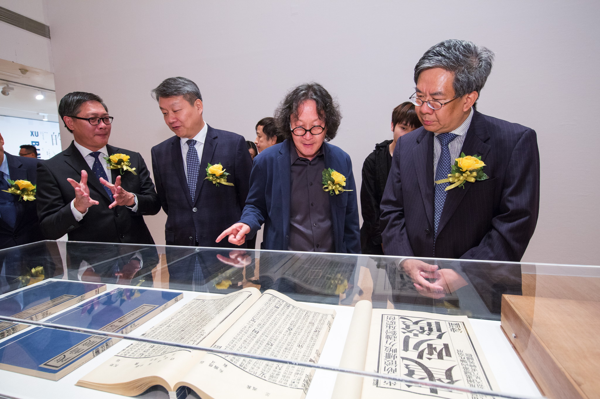 The exhibition’s inauguration was officiated by the President of the Cultural Affairs Bureau of the Macao S.A.R. Government, Leung Hio Ming; the Assistant of the Deputy Director of the Department of Publicity and Culture of the Liaison Office of the Central People's Government in the Macao S.A.R., Shao Bin;;; the artist Xu Bing; the Executive Director of the United Art Museum of Wuhan, Lu Hong; the curator Feng Boyi; the President of the Macau Artist Society, Lai Ieng; and the Director of the Macao Museum of Art, Chan Kai Chon.
