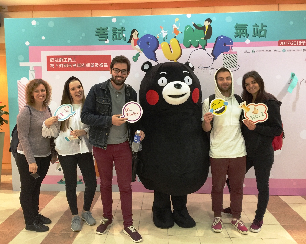 For the purpose of cheering up students for exams and motivating students to prepare for exams with a positive attitude, the Student Affairs Office and Student Union of Macao Polytechnic Institute have distributed free drinks to students, and also set up a “Message Board”, where students can leave their wishes and blessings. Moreover, the Student Affairs Office has arranged a mascot doll to interact and take instant photos with students, and distributed a special “Lucky Photo Frame” to students which is especially made for this activity, wishing students can get good marks in exams.