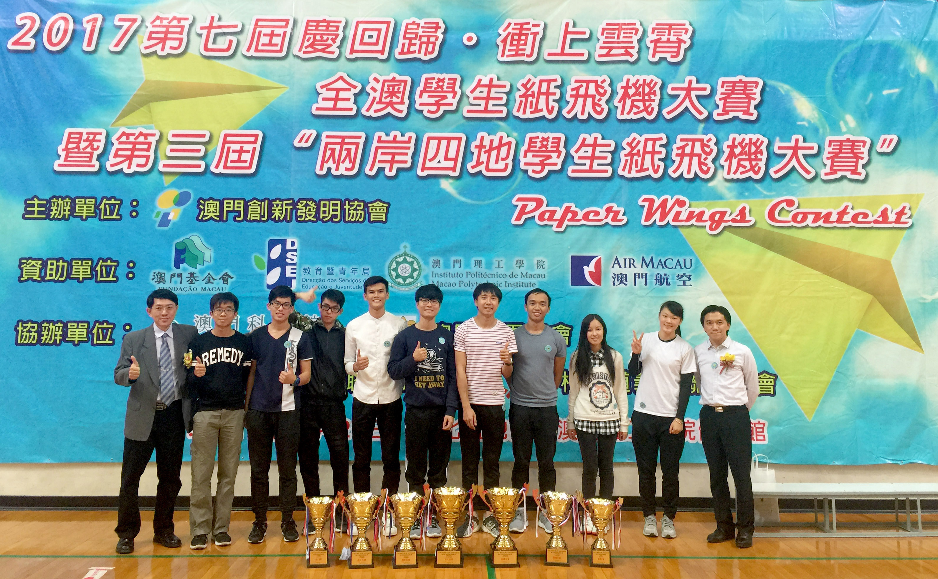 Students from the Department of Electromechanical Engineering, Faculty of Science and Technology (FST), University of Macau (UM), led by Senior Instructor Lao Seng Kin, recently won the top three prizes in both the group category and the individual category, in the university section of a paper plane contest. This is the fourth consecutive year that UM students have won the championship at this competition.