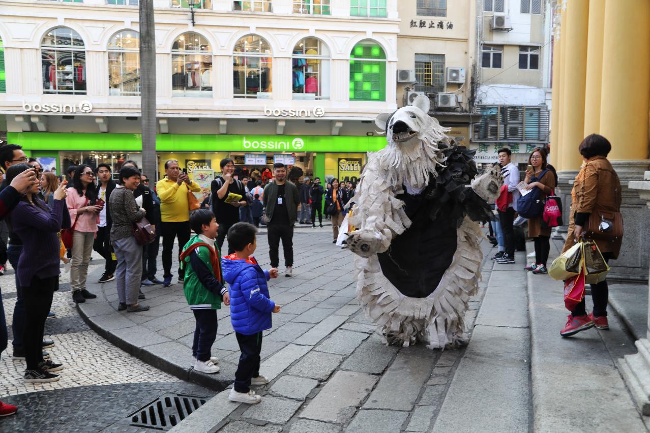 In this edition of the Festival, many programmes were held in the community, allowing the public to enjoy art closely through theatrical pieces integrated into the surrounding environment. In Bear with Us, three giant bears roamed the streets and caused pleasant surprises, drawing crowds of people to take photographs. In Cracks – Physical Performance in the City, the performers danced at the Ruins of St. Paul’s and interacted with the public, making them join in the dance and creating a lively atmosphere. In Making Space, participants expressed that it seemed easy to walk backwards at Senado Square and Jorge Álvares Square, but in fact they had to give up what they were familiar with and put down their fear, in order to enjoy the landscape from a different view.