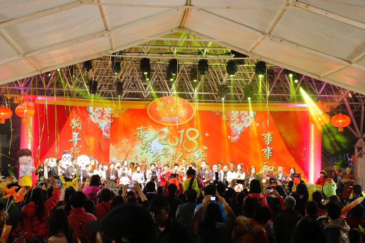 Organized by the Macao Government Tourism Office (MGTO), the “Parade for Celebration of the Year of the Dog” was held at the Northern District tonight (24 February) to celebrate the joy of Lunar New Year with all. A large number of residents and visitors flocked to enjoy the float parade along the route and the stage performances at Iao Hon Market Garden. MGTO Director Maria Helena de Senna Fernandes, Deputy Director Cheng Wai Tong, Vice President of Cultural Affairs Bureau, Leong Wai Man, Vice President of Sports Bureau, Lam Lin Kio, Head of Department of Civic Affairs and Consultation of Civic and Municipal Affairs Bureau, Patsy Ko Pui San, and other guests officiated the kick-off ceremony for the Parade at Rua Norte do Patane at 8 p.m.