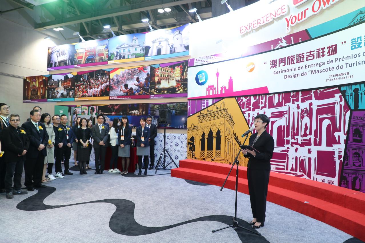 A prize-giving ceremony was held today (27 April) to present first, second and third prizes as well as ten merit prizes to winners of the Design Contest for Macao Tourism Mascot. The Design Contest for Macao Tourism Mascot was organized by the Macao Government Tourism Office (MGTO) together with the co-organizers, the Cultural Affairs Bureau and the Cultural Industry Fund. The mascot models of the 13 top-rated entries selected at the preliminary stage are showcased at the Macao Pavilion of the 6th Macao International Travel (Industry) Expo (MITE) starting today. Residents and visitors are welcomed to view the mascot models during the three-day Expo.