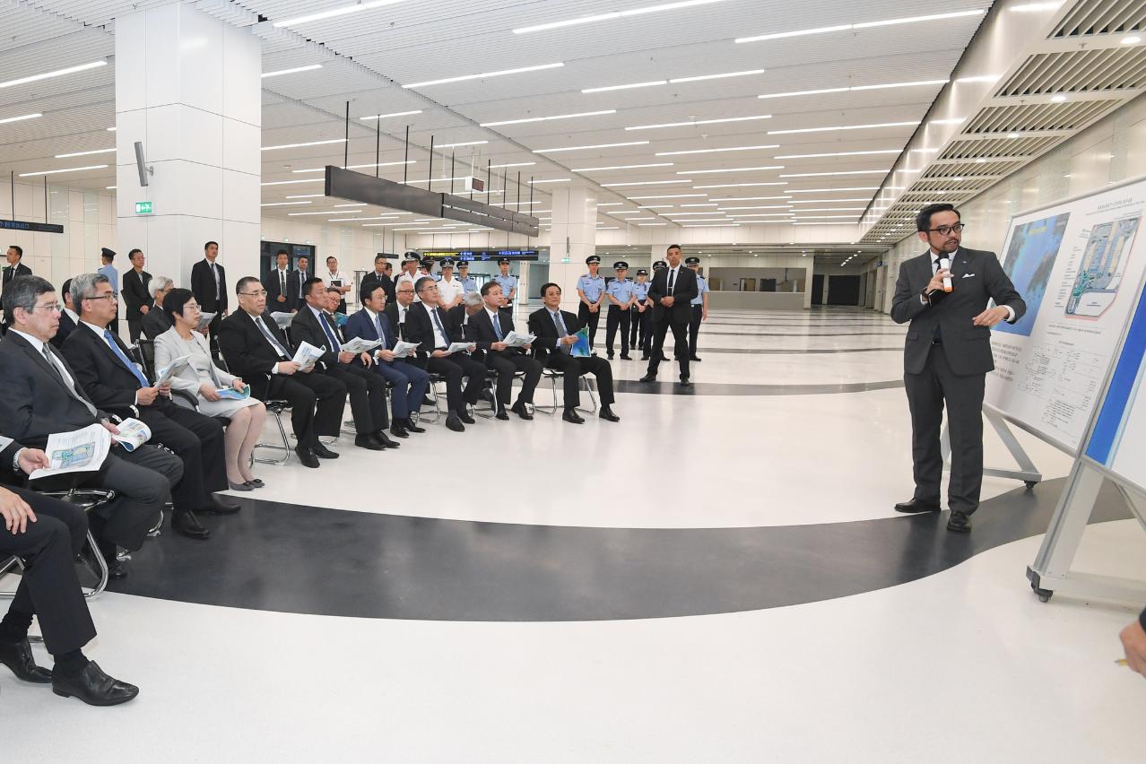 During today’s briefing sessions, the inspecting group paid close attention to information regarding immigration procedures for residents and visitors, and measures designed to create convenient access for travellers. Topics also discussed during the inspection included the boundary crossing flow model being utilised, the space reserved for possible future expansion of such facilities, and the ventilation system employed at the boundary crossing area.