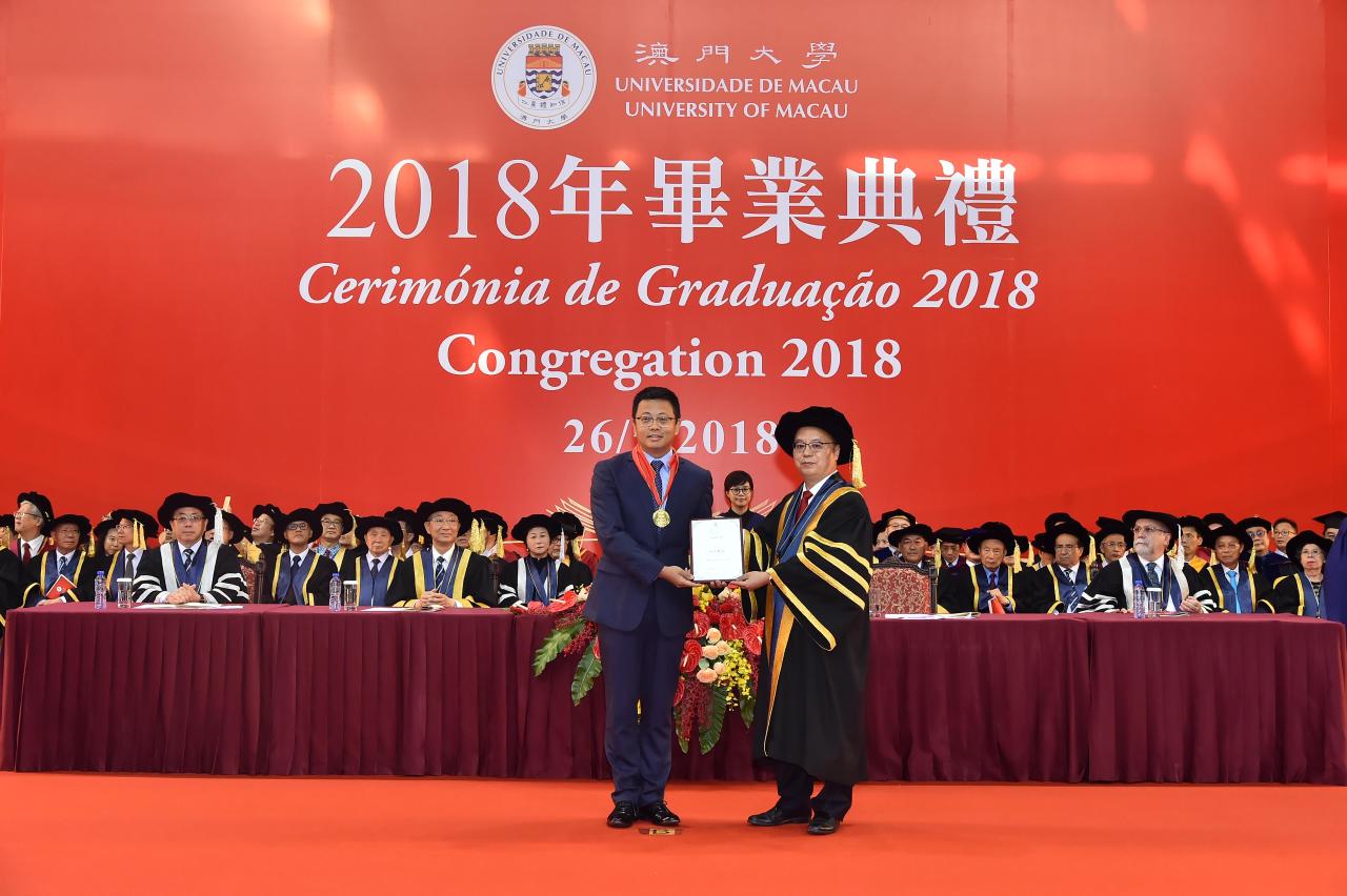 The University of Macau (UM) today (26 May) presented the Teaching Excellence Award at the Congregation 2018 to recognise outstanding performance in teaching. The recipient was Faculty of Law Associate Professor Shui Bing.