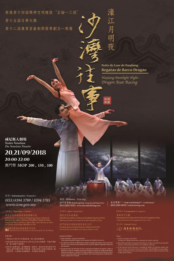 To celebrate the Mid-Autumn Festival, the Cultural Affairs Bureau presents the dance drama “Haojiang Moonlight Night – Dragon Boat Racing” on 20 and 21 September, at 8pm, at The Venetian Theatre. The dance drama is jointly organized by the Hong Kong, Macao and Taiwan Affairs Office of the Ministry of Culture and Tourism of the People’s Republic of China and the Cultural Affairs Bureau of the Macao SAR Government, counting on the support of the Ministry of Culture and Tourism of the People’s Republic of China and the Secretariat for Social Affairs and Culture of Macao SAR, as well as with the cooperation of the Culture Department of Guangdong Province, China. Tickets will be on sale from Sunday (19 August) at the Macau Ticketing Network.