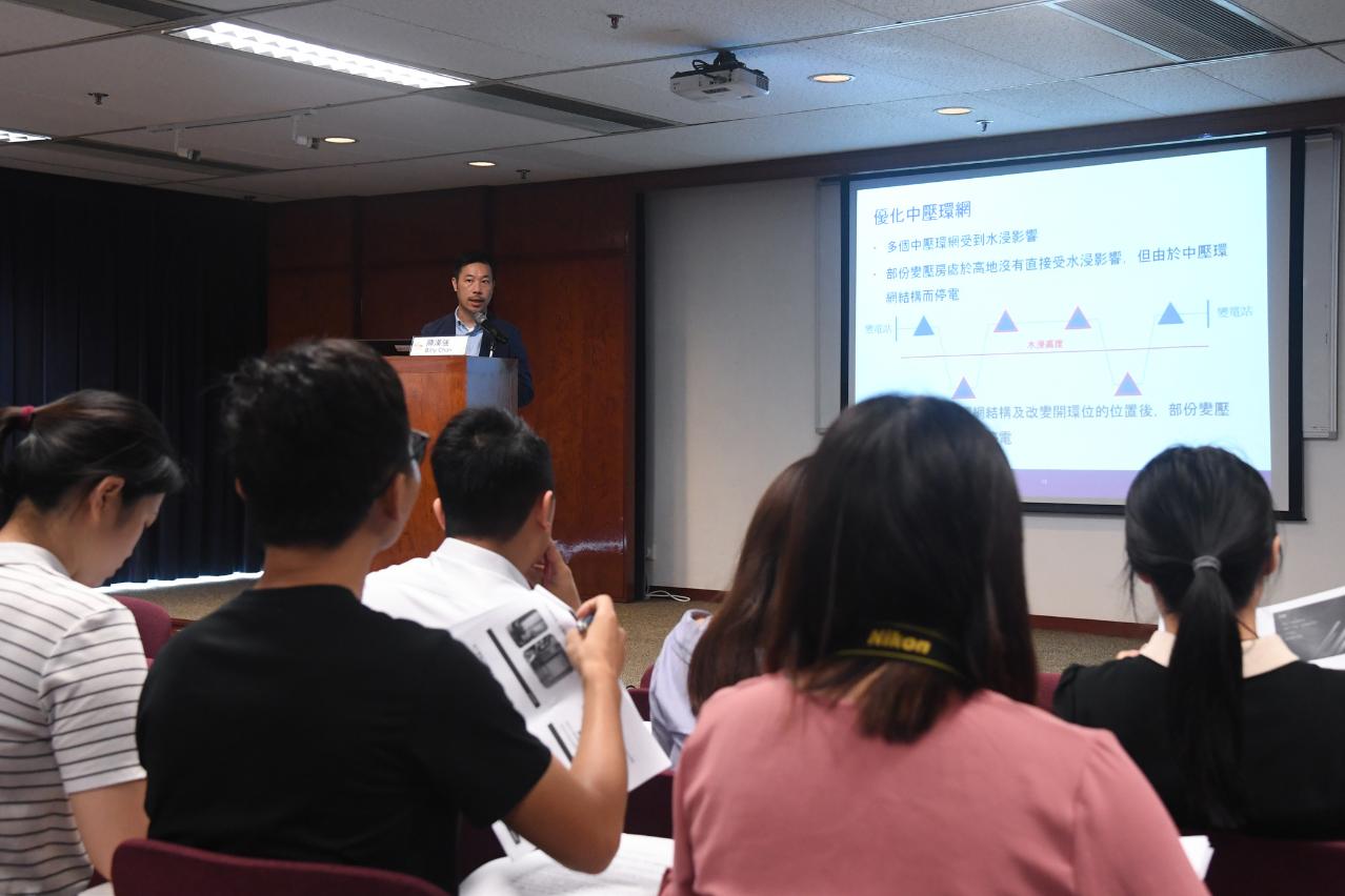 Additionally, a CEM representative shared information during today’s tour on the company’s plans for addressing flood prevention at electrical power facilities located in low-lying areas of Macao. The plans included: optimising the medium-voltage network; raising the height of power equipment relative to the shoreline; installing flood barriers; strengthening waterproofing of cable inlets; installing a flood alarm system; and installing sump pumps at substations that serve the consumer network.