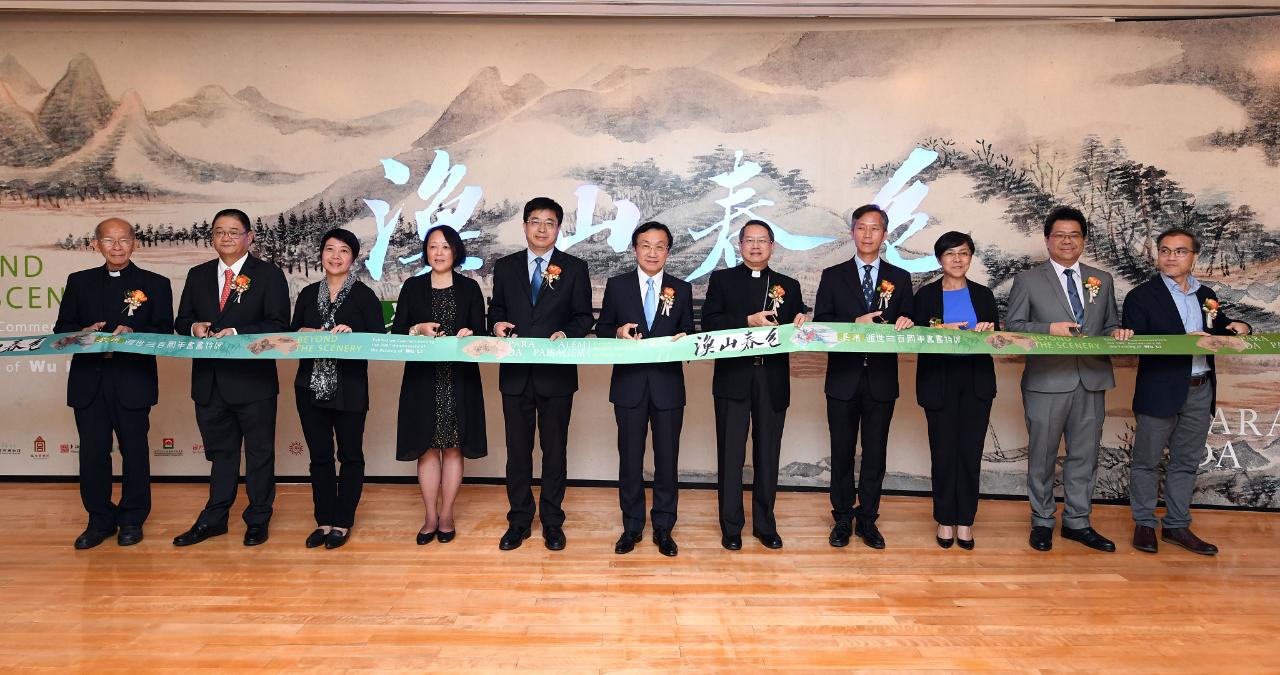 Jointly organised by the Macao Museum of Art (MAM) of the Cultural Affairs Bureau, the Palace Museum, the Shanghai Museum, the Macao Government Tourism Office, the Macao Foundation, and the Macao Daily News, with the support of the Hong Kong Museum of Art and Residência da Companhia de Jesus, the exhibition “Beyond the Scenery: Exhibition Commemorating the 300th Anniversary of the Passing of Wu Li” was inaugurated on 7 September, at 6:30pm, on the 4th floor of MAM, and was officiated by the Secretary for Social Affairs and Culture of the Macao S.A.R. Government, Alexis Tam Chon Weng; the Director of the Department of Publicity and Culture of the Liaison Office of the Central People's Government in the Macao S.A.R., Wan Sucheng; the Bishop of Diocese de Macau, Stephen Lee Bun Sang; the Deputy Director of the Palace Museum, Zhu Hongwen; the Deputy Director of the Shanghai Museum, Li Zhongmou; the Acting President of the Cultural Affairs Bureau, Leong Wai Man; the Director of the Macao Government Tourism Office, Maria Helena de Senna Fernandes; the President of the Administrative Committee of the Macao Foundation, Wu Zhiliang; the Acting Chief Editor of Macao Daily News, Choi Chi Tou; the Superior of the Companhia de Jesus SJ, Pe. Liu Chia Cheng, Beda; and the Curator of the Hong Kong Museum of Art, Tang Hing Sun, Sunny.