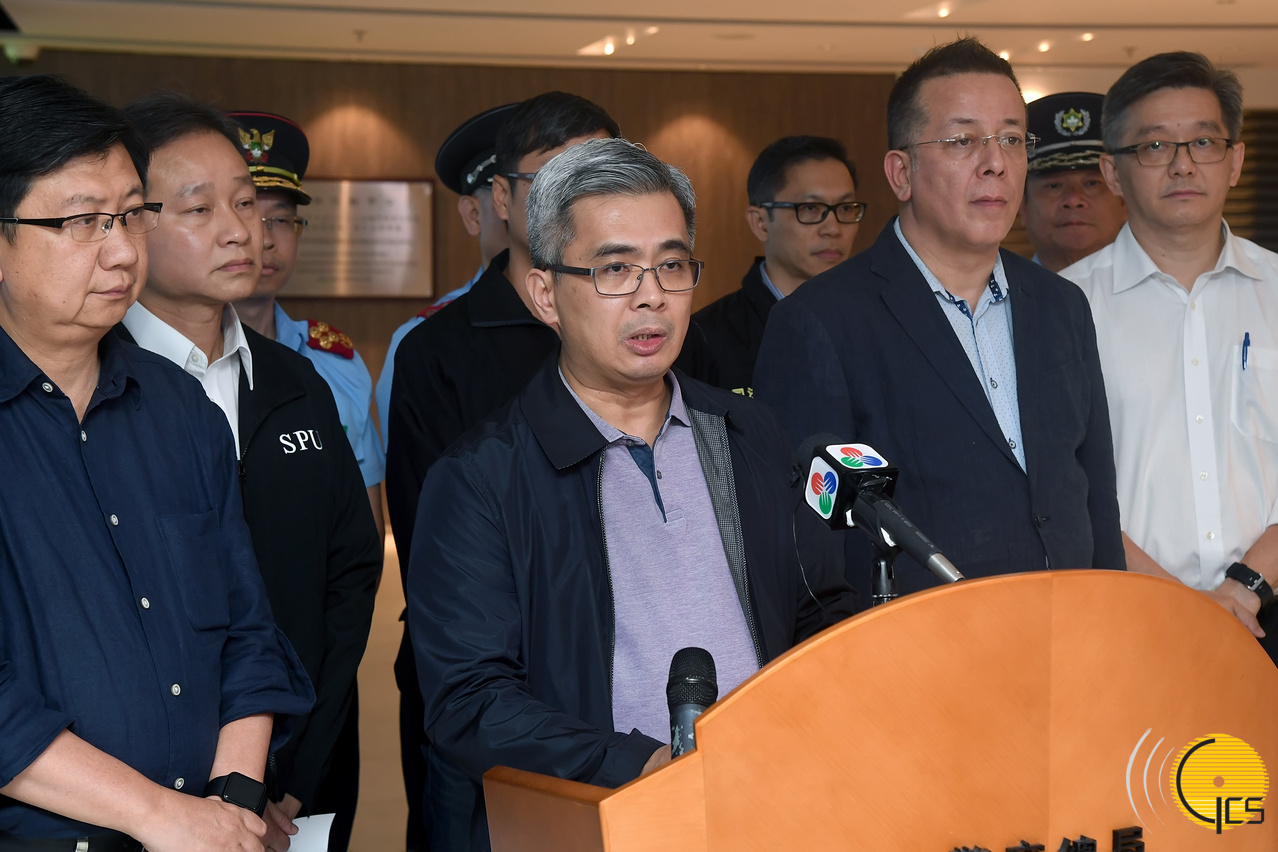 The Secretary for Security, Mr Wong Sio Chak, made the pledge late on Sunday evening (16 September), when Typhoon Signal No.8 was still in force. His comments came during a briefing at the Civil Protection Operations Centre to conclude the emergency coordination effort regarding Typhoon Mangkhut, as well as the next phase of recovery work.