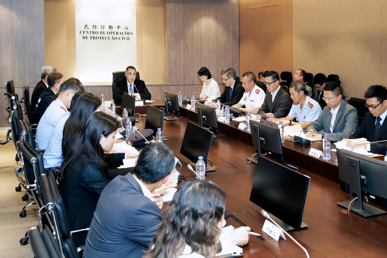 Officials attending today’s meeting were: the Secretary for Security, Mr Wong Sio Chak; the Commissioner-General of the Unitary Police Service and commander of the joint civil protection operations, Mr Ma Io Kun; the Director-General of the Macao Customs, Mr Vong Iao Lek; the Chief-of-Office of the Chief Executive’s Office, Ms O Lam; and representatives of the civil protection management team.