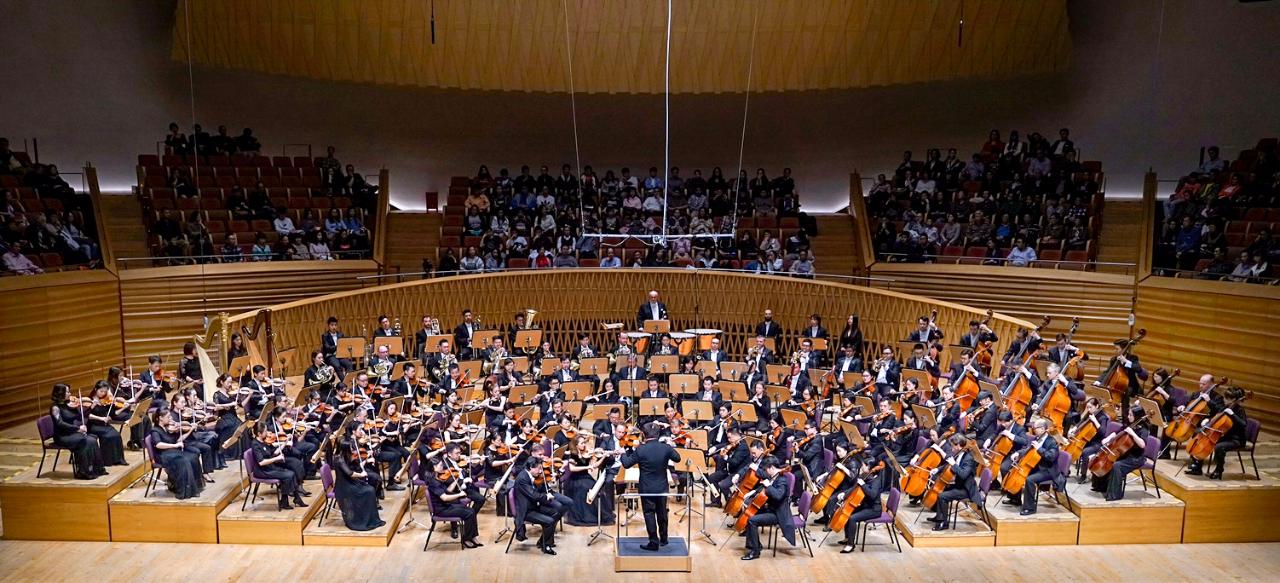 Invited by the respective organization, the Macao Orchestra (OM) of the Cultural Affairs Bureau travelled to Shanghai between 20 and 25 October to perform at the 20th China Shanghai International Arts Festival. Under the guidance of its Music Director and Principal Conductor, Lu Jia, OM took to the stage of the Shanghai Symphony Hall together with the Shanghai Philharmonic Orchestra to interpret Bruckner’s Symphony No.8 in C minor. Thanks to an excellent performance, the Orchestra earned the praise and applause of the public.