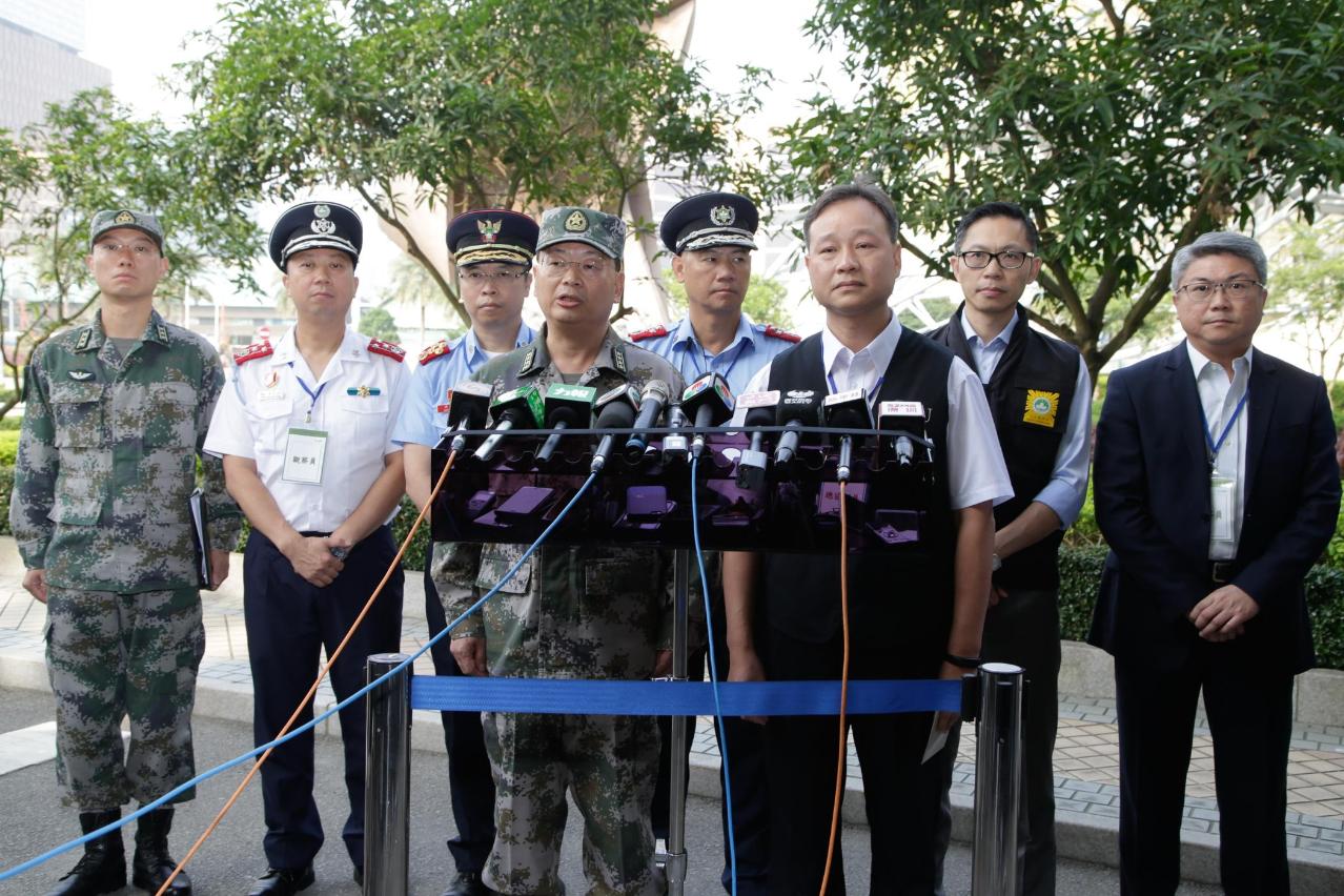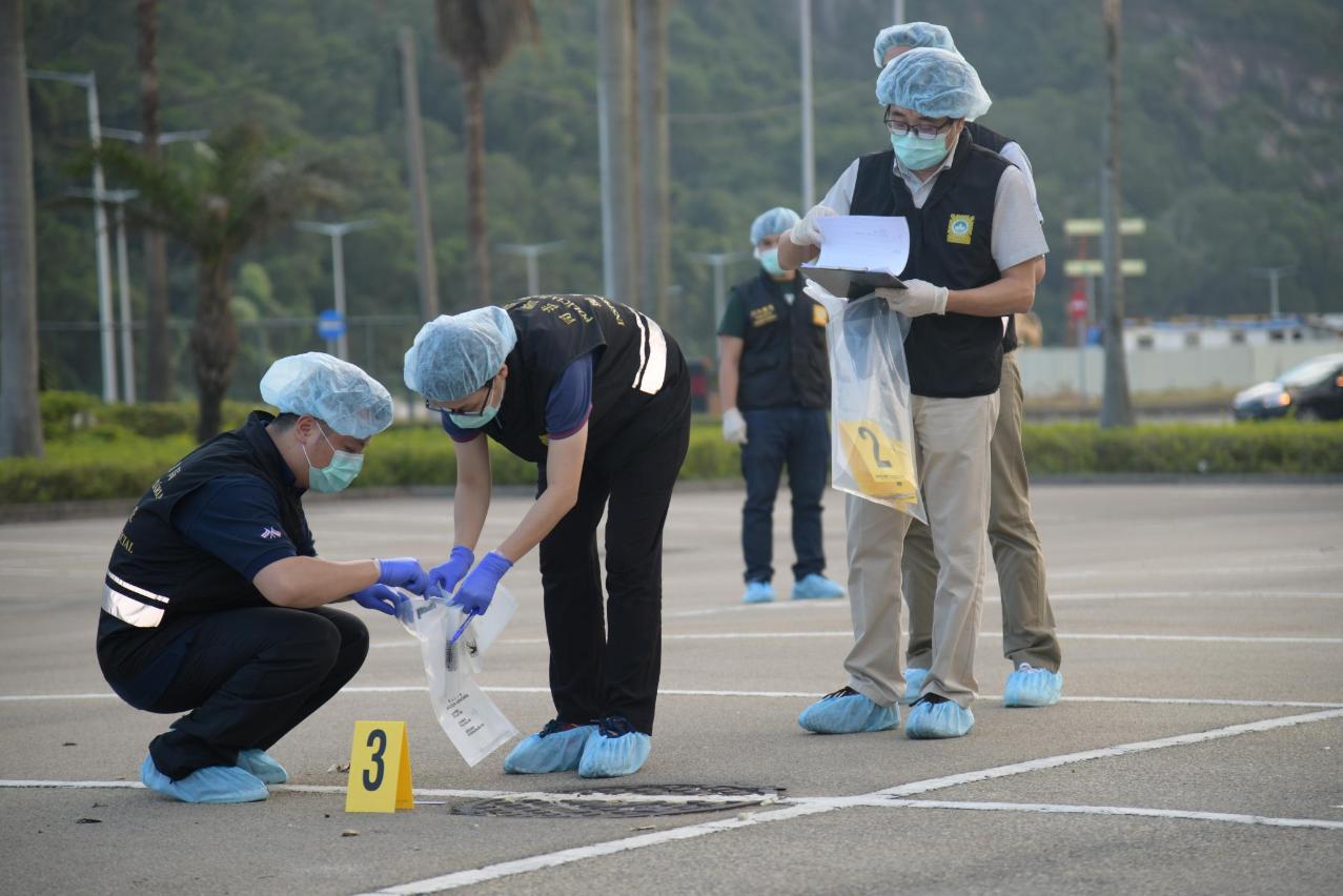 A total of 900 Macao personnel joined the exercise. They were from several public security authorities, including the Macao Customs Service’s unmanned aerial service team and its patrol vessel unit. There were also four teams from the Public Security Police Force, namely: the special patrol group; the police dog unit; the explosive ordnance disposal unit; and the special operation unit. There were additionally two units from the Judiciary Police, namely the negotiation unit and the crime scene investigation team. The Fire Services Bureau’s contribution to the exercise was in sending its special rescue squad; the Health Bureau sent a medical team and a vehicle to provide treatment for casualties. The drill was also supported by the Sports Bureau and the Government Information Bureau.
