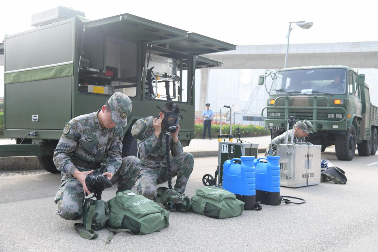 An additional 49 personnel from the PLA Macao Garrison took part in the drill. They joined the police efforts regarding detection of ‘dangerous substances’ as well as ‘disinfection’ and ‘decontamination’ of incident scenes.