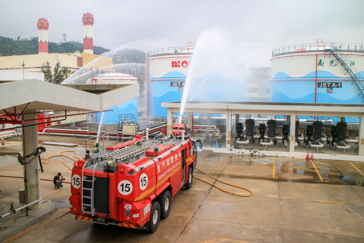 Macau International Airport carried out the “Fire in the Fuel Farm Exercise 2019” this afternoon (22 March 2019) in which all participating entities cooperated closely with each other to resolve the crisis. The exercise was deemed smooth.