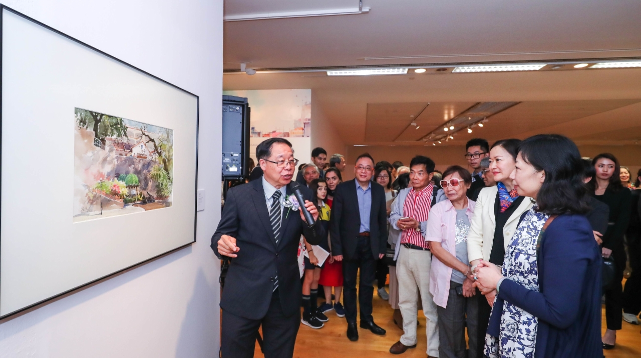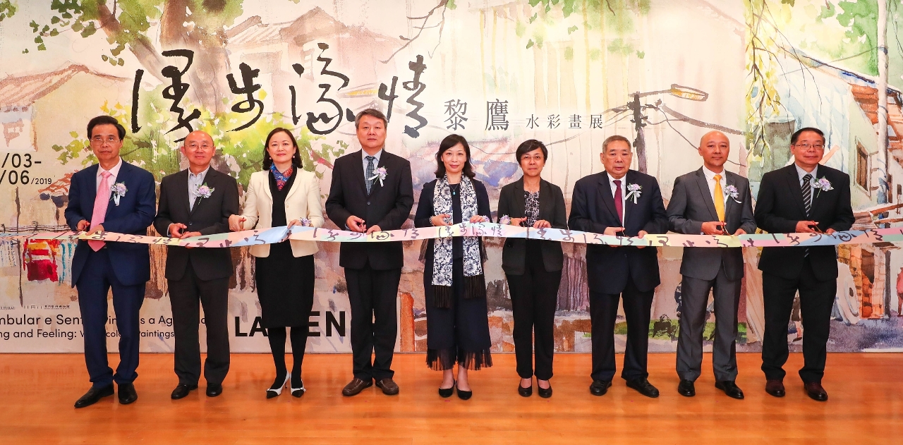 Organized by the Macao Museum of Art (MAM), under the auspices of the Cultural Affairs Bureau, the exhibition “ Strolling and Feeling: Watercolour Paintings of Lai Ieng” was inaugurated on 22 March, at 6:30pm, at the special exhibition room on the 3rd floor of MAM. The opening ceremony was held in a lively atmosphere and was officiated by the President of the Cultural Affairs Bureau, Mok Ian Ian; the Assistant of the Deputy Director of the Department of Publicity and Culture of the Liaison Office of the Central People's Government in the Macao S.A.R., Shao Bin; the Director of the Macao Government Tourism Office, Maria Helena de Senna Fernandes; the Vice-President of the Administrative Committee of the Macao Foundation, Zhong Yi Seabra de Mascarenhas; the President of Yu Un Chinese Calligraphers and Painters Association of Macao, Chui Sai Cheong; the Director of Macao Daily News, Lok Po; the President of the Macau Artist Society, Lok Hei; the Chairman of the Macau Chinese Cultural Friendship Association, Leong Wa; and the artist of the exhibition, Lai Ieng.