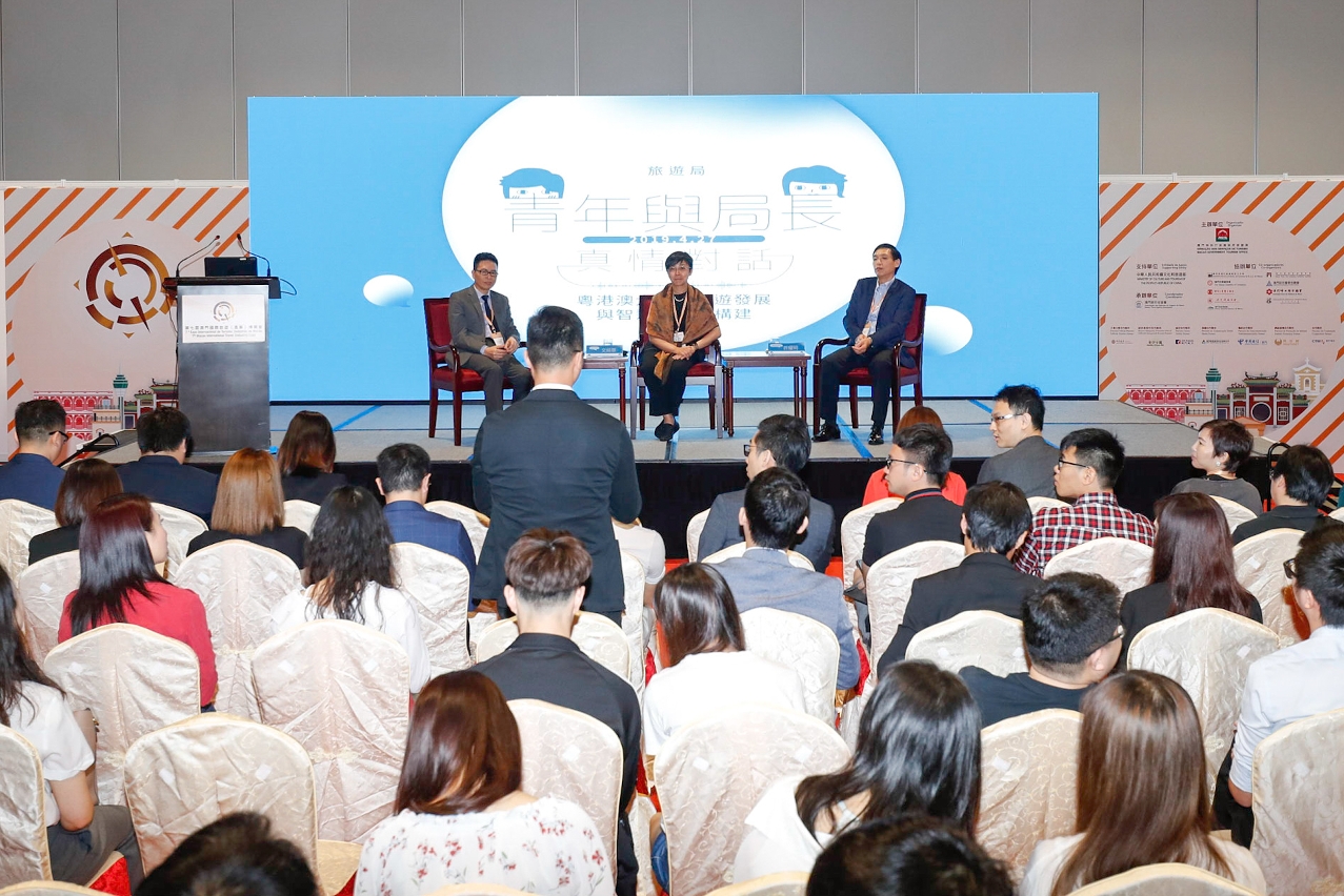 Deputy Chief of Youth Committee of Macao Chamber of Commerce, Tina Wong, Standing Deputy Director of Youth Committee of Macao Federation of Trade Unions, Lou Io Wa, Deputy Supervisor of Youth Affairs Committee of General Union of Neighbors Association of Macau, Hong Wai Tong, Vice President of the Fu Lun Youth Association of Macau, Kelly Lao, Standing Director of Youth Association of Returned Overseas Chinese Macau, Raymond Lao, as well as Head of Organizational Planning and Development Department of MGTO, Sarah Ma, and Head of Tourism Product and Events Department of MGTO, Jennifer Si Tou, attended the dialogue session together with other personages.