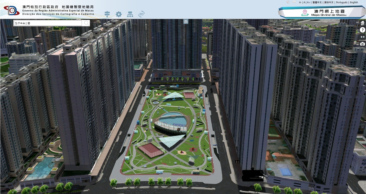 According to《The Five-Year Development Plan of the Macao Special Administrative Region (2016-2020) 》, to tie in with the development of smart city and the implementation of the three-dimensional map application, Cartography and Cadastre Bureau (DSCC) launches the 3D Map function on the basis of the “Macao Online Map” platform, which allows public to navigate the 3D scenes of Macao in a visual and multi-angles way and see the city's landscapes without going out.