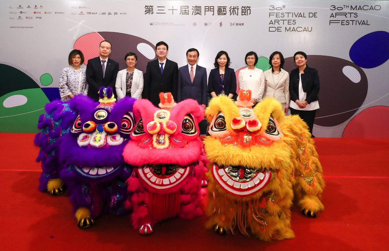 The 30th Macao Arts Festival (MAF), organized by the Cultural Affairs Bureau, was inaugurated on Friday, 3 May, at 7:40pm, at the lobby of the Macao Cultural Centre Grand Auditorium. The opening ceremony was officiated by the Secretary for Social Affairs and Culture of the Macao SAR Government, Alexis Tam Chon Weng; the Deputy Director of the Liaison Office of the Central People's Government in the Macao SAR, Xue Xiaofeng; the President of the Cultural Affairs Bureau, Mok Ian Ian; the Director of the Macao Government Tourism Office, Maria Helena de Senna Fernandes; the Member of the Administrative Committee of the Macao Post and Telecommunications Bureau, Van Mei Lin; the Deputy General Manager of Bank of China (Macau Branch), Geng Wei; the Director and Member of Executive Committee of Teledifusão de Macau, S.A., Lorman, Lo Song Man; the Vice President of Arts & Culture of MGM, Cristina Kuok; and the Vice President of the Cultural Affairs Bureau, Leong Wai Man. A junior lion dance performance by MGM was also held. In order to celebrate the 30th anniversary of the Macao Arts Festival, the Macao Post and Telecommunications Bureau set up a booth in the lobby of the Macao Cultural Centre to sell philatelic products.