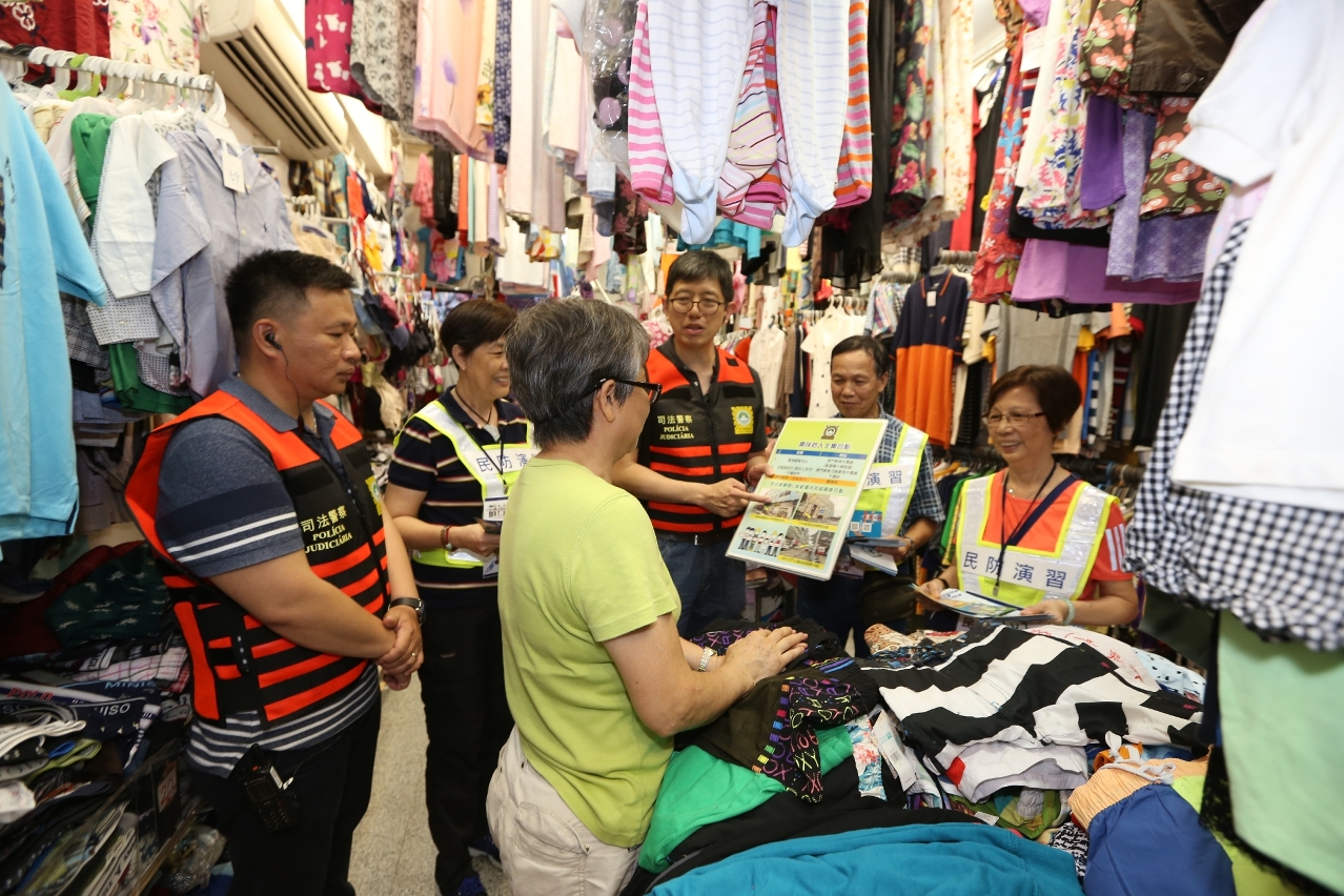 The workshop and the drill took place on 26 May 2019 at Associação de Mútuo Auxílio dos Moradores das Ruas de S. Domingos, dos Mercadores e Vias Circundantes. During the workshop, representatives of Judiciary Police explored the evacuation plan, evacuation routes, various categories of storm surge, warning and broadcasting systems and audio warning signals in detail. The importance for the public to follow police instruction to evacuate quickly and orderly was also emphasised and citizens were encouraged to take precautions against disasters in advance and foster the spirit of neighbourhood assistance in the case of unexpected events. Meanwhile, the representative of the Social Welfare Bureau introduced shelter centres across Macao, including their facilities, resources and opening times, in addition, the locations of assembly points for people in need and the emergency evacuation staying points in the workshop.