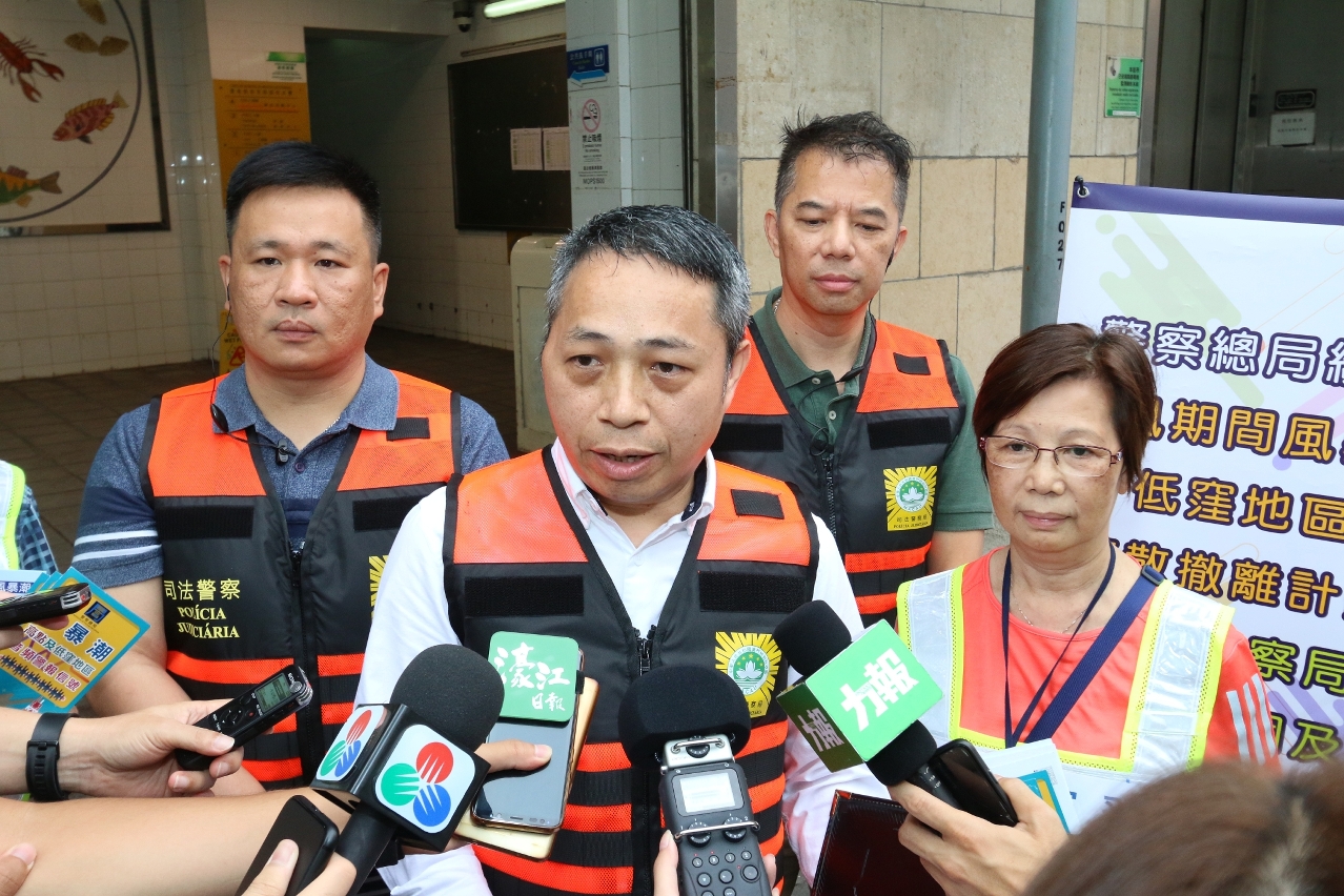 Typhoon season is approaching, Judiciary Police and the Social Welfare Bureau, under the coordination of the Unitary Police Service, jointly organised “Storm Surge Evacuation Plan in Low-lying Areas during Typhoon” workshop and stimulation drill, which invited members of the public to take part. Its aims were to strengthen awareness of the community towards precautionary and safety measures for disasters, so that members of the public could gain an understanding on how to safely and orderly evacuate when a storm surge hit the city, in addition, to reinforce the response and coordination abilities of Judiciary Police evacuation team and collect public feedback on the evacuation process for optimal results.