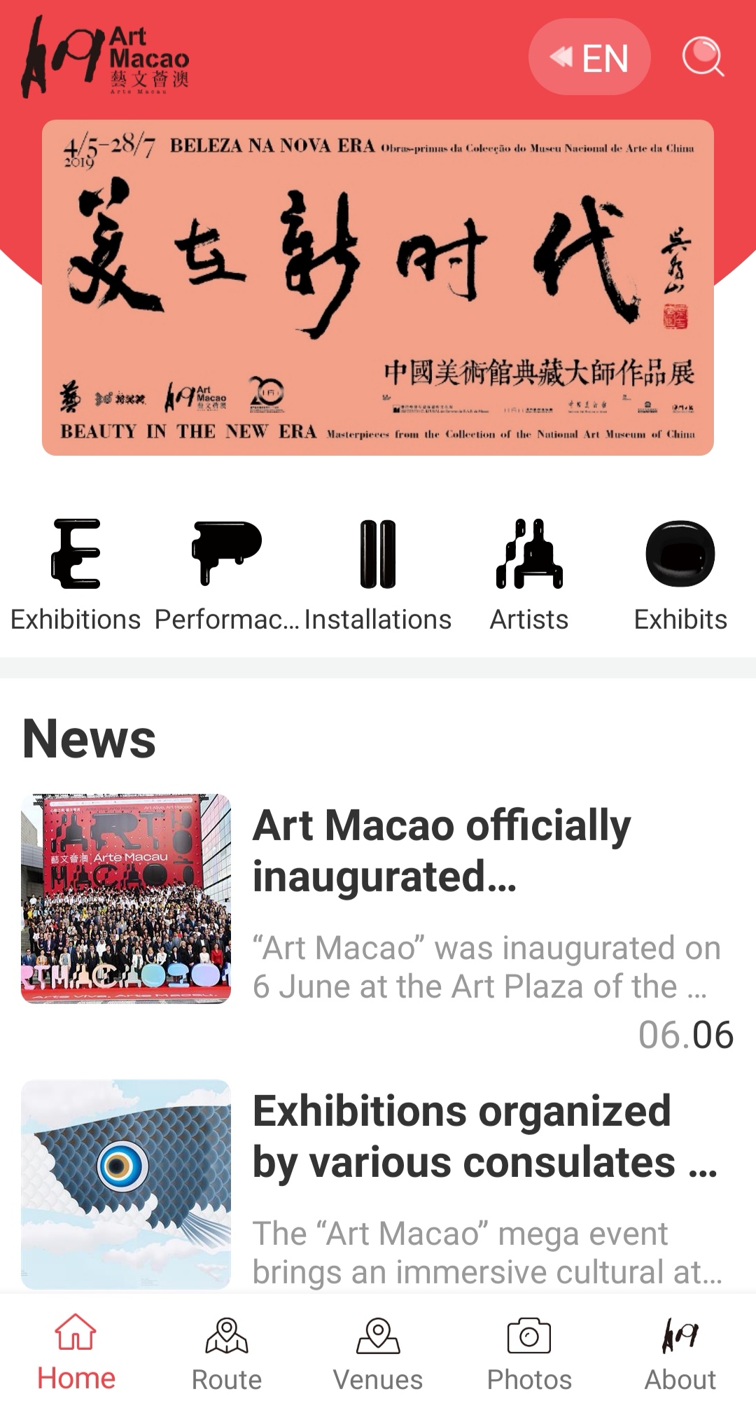 The Organizer specially launched a mobile application, named “Art Macao”, featuring details of the exhibitions, events, artists’ profiles and exhibits. The application also features a function of photography with a number of graphic patterns specially designed for the event, adding a lively festive atmosphere; the information in the application is constantly updated and the application is available in traditional and simplified Chinese, Portuguese and English. The application can be downloaded for free by searching “Art Macao” in the App Store or Google Play. Residents and tourists are welcome to enjoy the application.