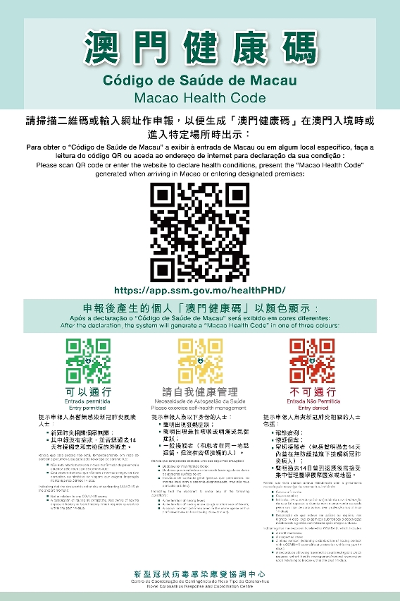 3) They must hold a valid green-code certificate relating to a health-status declaration under Macao’s health reporting system.