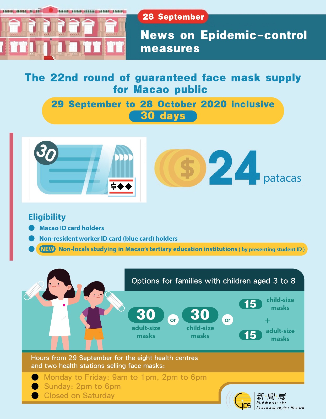 【Infographic】The 22nd round of guaranteed face mask supply for Macao public