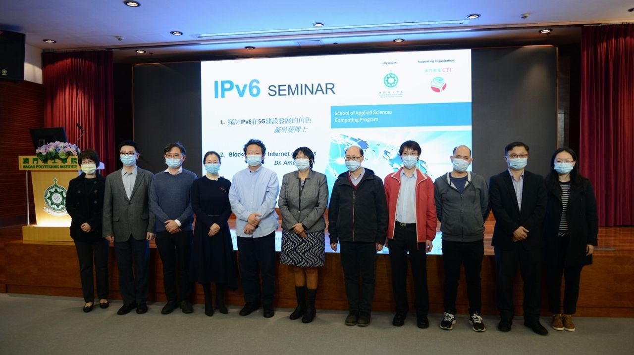 In order to strengthen the development and promotion of Internet Protocol IPv6 in Macao, to complement the active promotion of 5G technology commercialization, to further promote the development and construction of the “smart city” of Macao, and to help promote the construction of an international technology innovation centre in the Greater Bay Area, the Macao Polytechnic Institute (MPI), with the support of the Macao Post and Telecommunications Bureau (CTT), recently held a seminar on the role of IPv6 in 5G technology development. Associate Professor of the Bachelor of Science in Computing Programme of MPI, Dr. Luo WuMan, was invited to present “The Role of IPv6 in 5G Technology Development”. Associate Professor of MPI, Dr. Song-Kyoo (Amang) Kim, discussed IPv6 related applications in his presentation, “Blockchain for the Internet of Things”. The seminar was attended by more than 100 guests, including Prof. Tse Tan Sim, Director of the School of Applied Sciences (ESCA) of MPI, representatives from CTT, as well as teachers and students from the Bachelor of Science in Computing Programme.