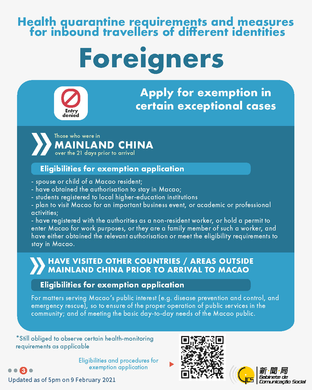 [infographic] 9 February 2021 health quarantine requirements and measures for inbound travellers