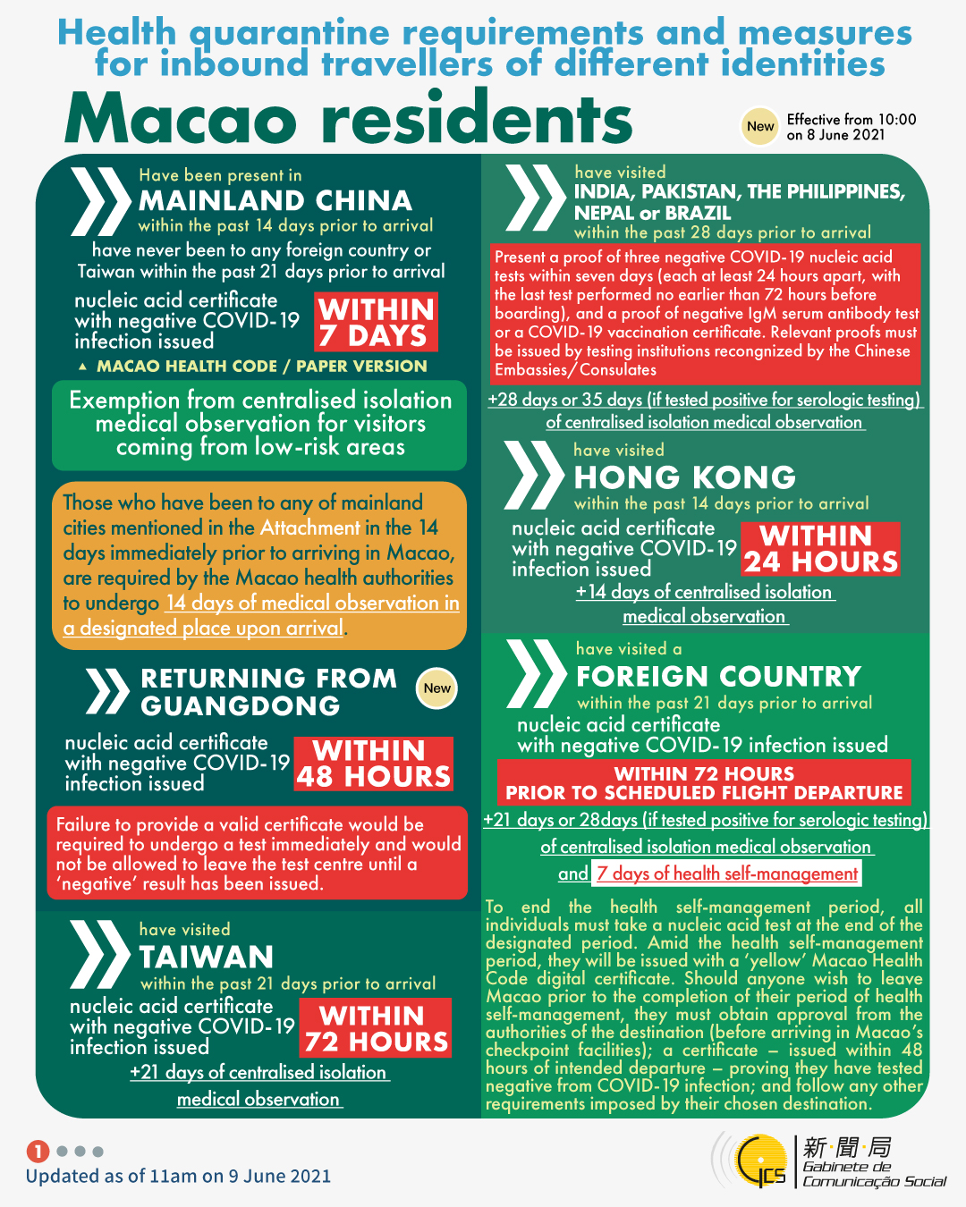 [infographic] 9 June 2021 health quarantine requirements and measures for inbound travellers
