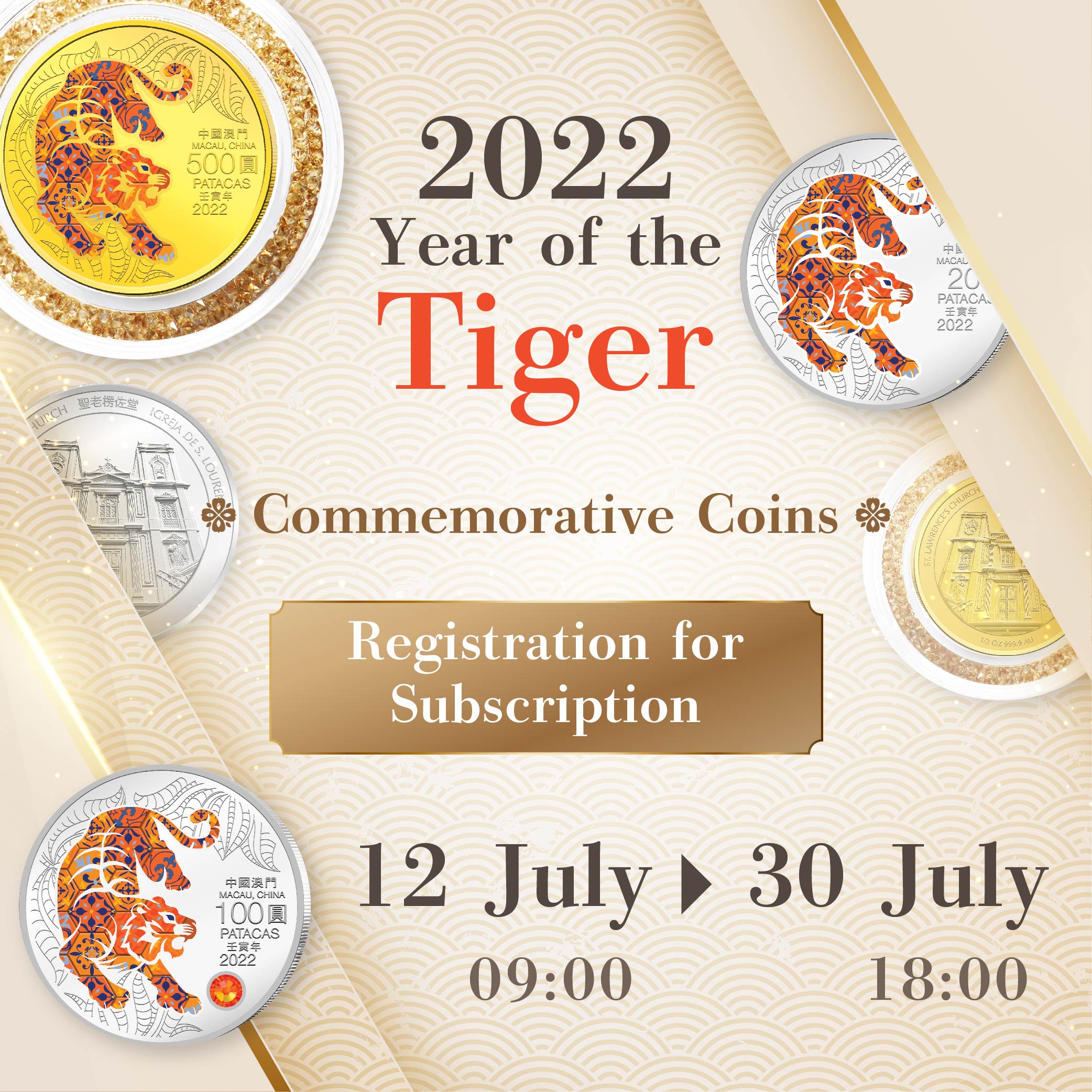 The Monetary Authority of Macao (AMCM) will be launching 2022 Year of the Tiger commemorative coins and online registration for the subscription will start on next Monday (12 July 2021).