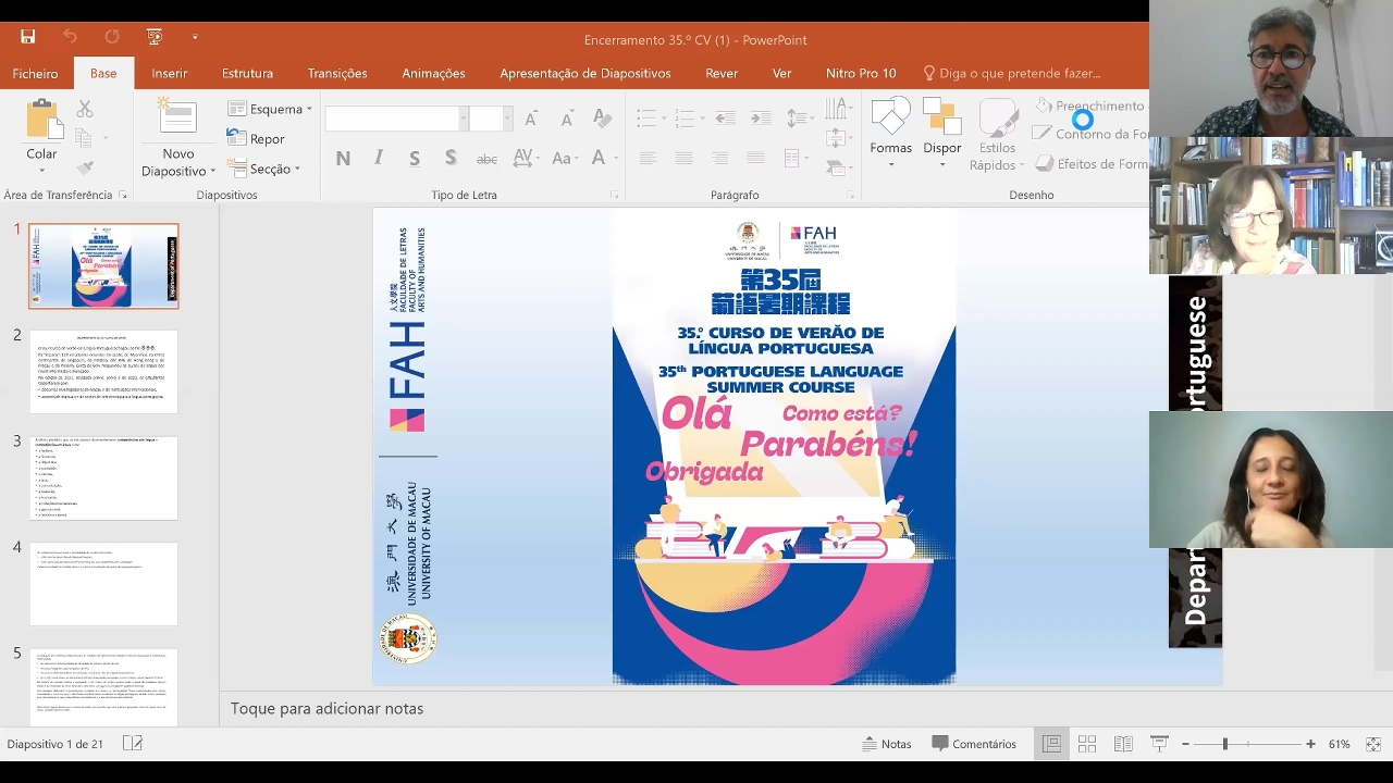 The 35th Portuguese Language Summer Course, organised by the University of Macau (UM) Department of Portuguese, has ended with success. This year’s summer course attracted 123 students from Japan, Myanmar, mainland China, Singapore, Malaysia, Poland, Hong Kong, and Macao. Approximately 60 per cent of the participants attended language courses at intermediate and advanced levels.